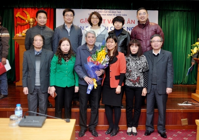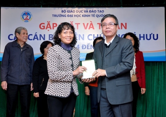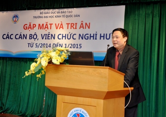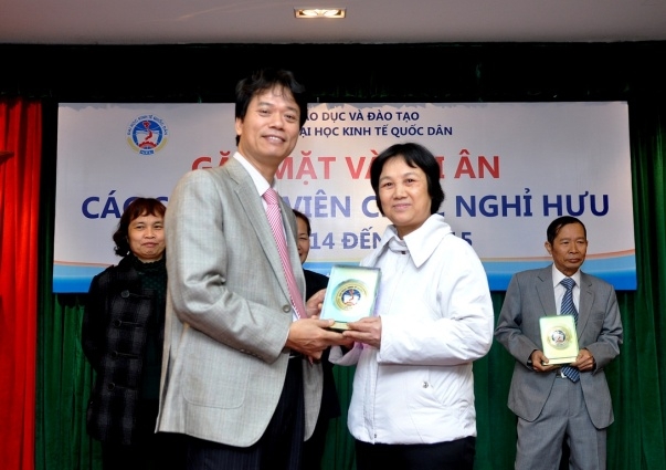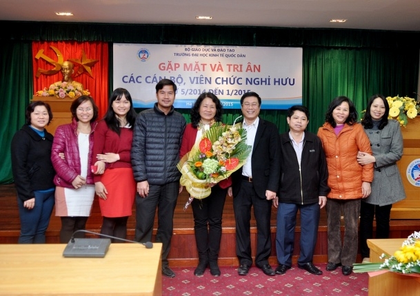 Sáng nay, 21/01/2015, tại G2.N10, Trường Đại học Kinh tế Quốc dân đã long trọng tổ chức buổi Gặp mặt tri ân cán bộ, viên chức nghỉ hưu từ 01/5/2014 đến hết tháng 01/2015. Đến dự buổi gặp mặt có GS.TS.Trần Thọ Đạt – Hiệu trưởng, Bí thư Đảng ủy, GS.TS.Phạm Quang Trung – Phó Hiệu trưởng, PGS.TS.Phạm Hồng Chương – Phó Hiệu trưởng, GS.TS. Nguyễn Viết Lâm – Phó Bí thư Thường trực Đảng ủy, TS. Nguyễn Hữu Đồng – Chủ tịch Công đoàn trường, Ths.Bùi Trung Hải – Bí thư Đoàn thanh niên, GS.TS.Hoàng Ngọc Việt – Chủ tịch Hội Cựu chiến binh trường cùng đại diện lãnh đạo các tổ chức chính trị, lãnh đạo các đơn vị và 20 đồng chí cán bộ viên chức nghỉ hưu theo chế độ của nhà nước trong khoảng thời gian từ 01/5/2014 đến hết tháng 01/2015. |