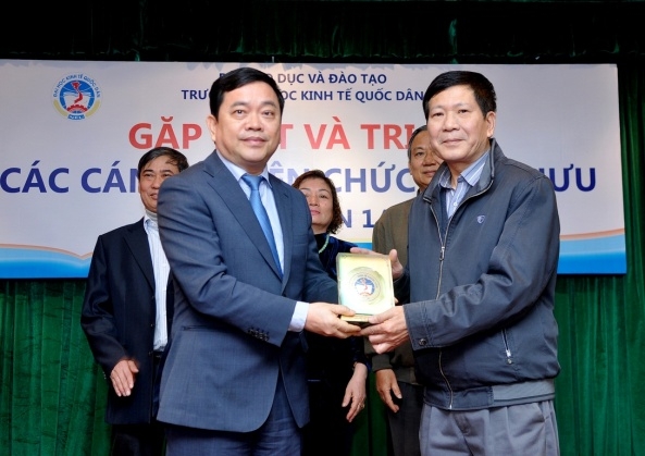 Phát biểu tại buổi lễ, GS.TS.Trần Thọ Đạt – Hiệu trưởng, Bí thư Đảng ủy đã gửi lời cảm ơn chân thành tới các đồng chí nghỉ hưu và đánh giá cao những đóng góp, cống hiến của các đồng chí trong suốt quá trình công tác tại trường; đặc biệt Giáo sư Hiệu trưởng khẳng định rằng, với 59 năm xây dựng và phát triển, trường Đại học Kinh tế Quốc dân đã đạt được những thành tựu to lớn, được Đảng, Nhà nước và Chính phủ tặng thưởng nhiều Huân, Huy chương và Danh hiệu cao quý. Những thành tựu này là công sức của tập thể sư phạm nhà trường qua các thế hệ, trong đó có sự đóng góp, cống hiến hết mình của 20 đồng chí cán bộ viên chức nghỉ hưu đợt này; đồng thời Giáo sư Hiệu trưởng cũng gửi lời chúc sức khỏe và hạnh phúc tới các đồng chí nghỉ hưu và hy vọng các đồng chí sẽ luôn giữ mối quan hệ mật thiết với nhà trường, với ngôi nhà chung Đại học Kinh tế Quốc dân thân yêu.