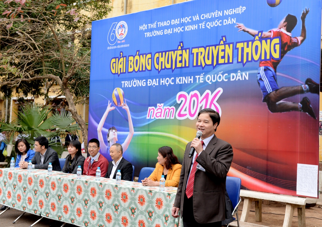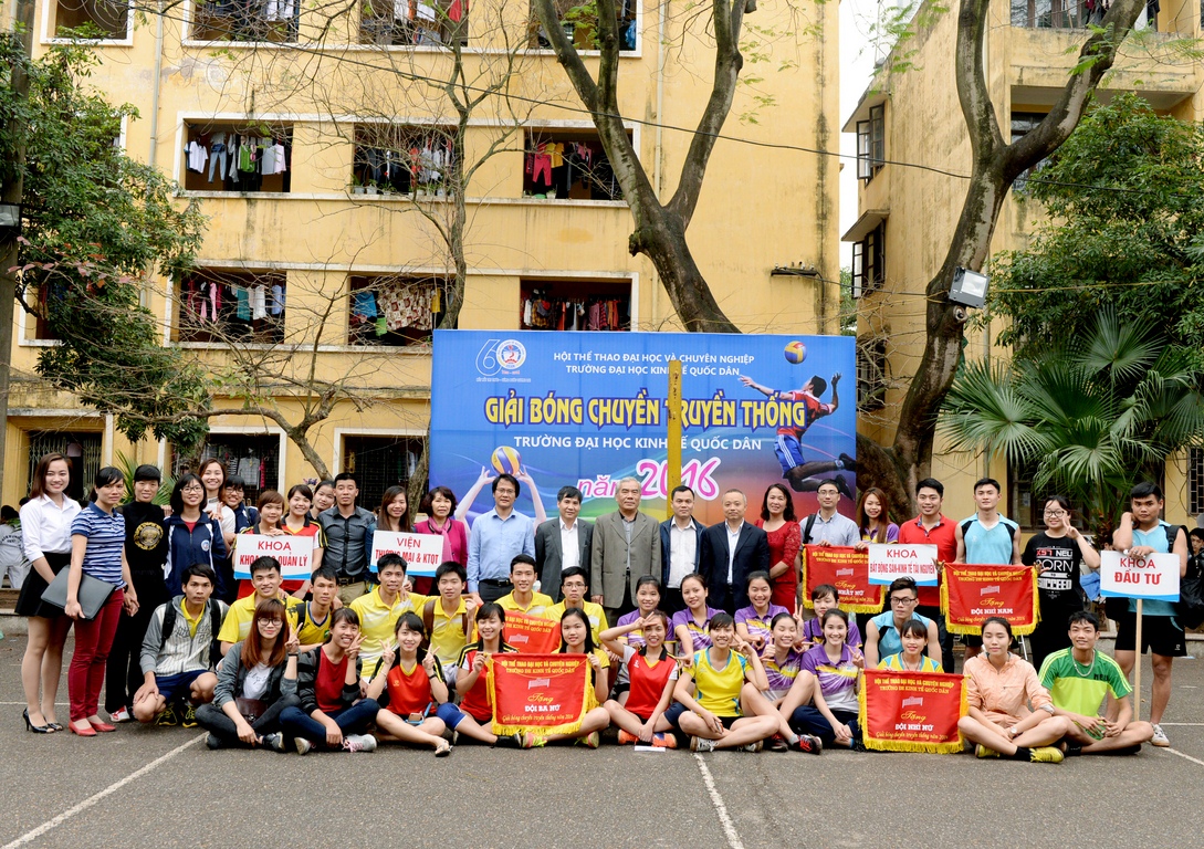 Nhân kỷ niệm 85 năm Ngày thành lập Đoàn TNCS Hồ Chí Minh, 70 năm Ngày Thể thao Việt Nam và hướng tới kỷ niệm 60 năm Thành lập Trường Đại học Kinh tế quốc dân, được sự đồng ý của Đảng ủy, Ban giám hiệu Nhà trường, Bộ môn Giáo dục thể chất đã tổ chức Giải Bóng chuyền truyền thống sinh viên Kinh tế quốc dân năm 2016. Giải Bóng chuyền truyền thống năm nay quy tụ 08 đội bóng nam và 10 đội bóng nữ đến từ các Khoa, Viện trong toàn trường. Giải đấu bắt đầu từ ngày 17/3/2016 đến hết ngày 21/3/2016 tại sân bóng chuyền Khu nội trú trường. Sau 05 ngày thi đấu sôi nổi, quyết liệt, giải đấu đã tìm ra được những đội bóng xuất sắc nhất và cũng từ đó tìm được những vận động viên tiềm năng bổ dung cho đội tuyển Nhà trường thi đấu ở các giải cấp cao hơn.