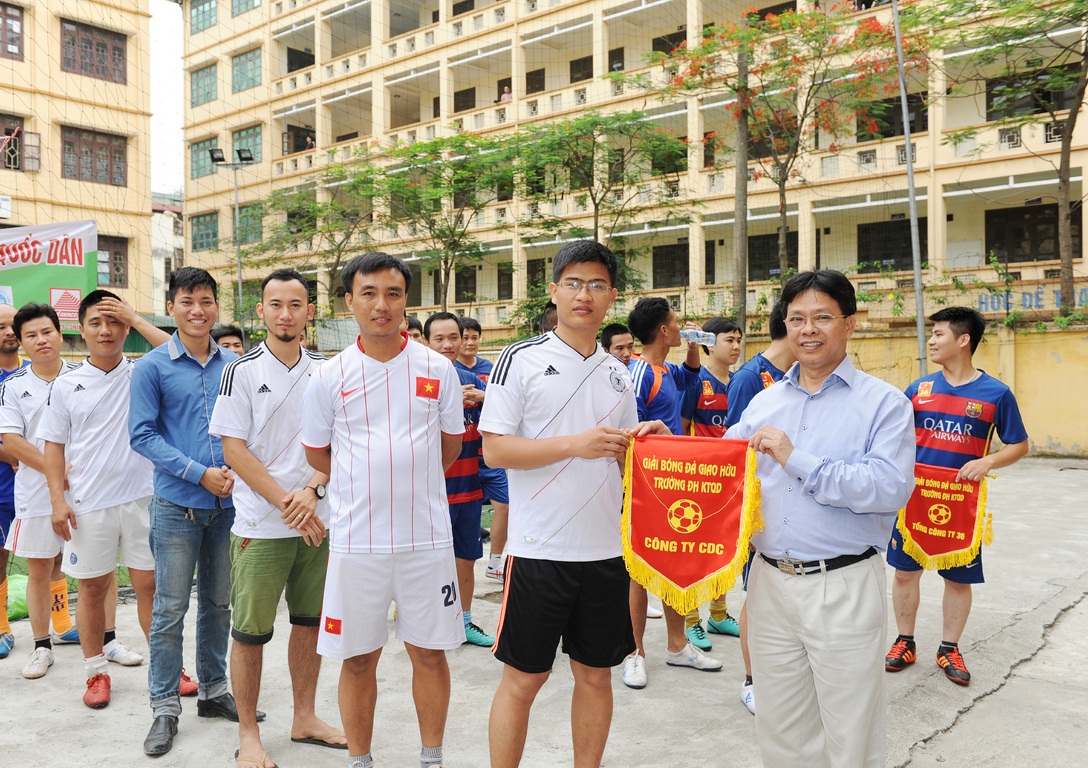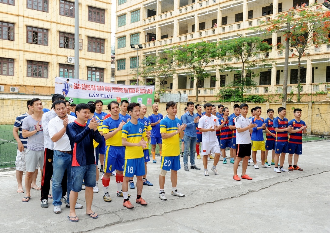 Hòa trong không khí cả nước cùng hướng tới kỷ niệm 125 năm ngày sinh Chủ tịch Hồ Chí Minh và nhằm tăng cường tinh thần đoàn kết, giao lưu giữa Nhà trường và các đơn vị quản lý, giám sát, thi công Nhà trung tâm đào tạo, câu lạc bộ bóng đá NEU đã tổ chức “Giải Bóng đá giao hữu Trường Đại học KTQD”. Giải đấu diễn ra trong ngày 17 tháng 5 năm 2015, tại Sân bóng Trường Trung cấp Công Thương 54 Vũ Trọng Phụng – Thanh Xuân – Hà Nội. Đến dự và cổ vũ giải đấu, về phía trường ĐHKTQD có: GS.TS.Trần Thọ Đạt – Hiệu trưởng, Bí thư Đảng ủy; PGS.TS.Phạm Hồng Chương – Phó hiệu trưởng, TS.Nguyễn Hữu Đồng – Chủ tịch Công đoàn cùng các thầy cô đại diện cho các phòng chức năng, công đoàn, câu lạc bộ bóng đá NEU. Về phía đại diện các đối tác có: Ông Nguyễn Đăng Thuận – Phó tổng giám đốc Công ty 36, Ông Nguyễn Thanh Bình – Giám đốc Trung tâm Điều hành dự án – Công ty CONINCO, Ông Nguyễn Văn Bình – Giám đốc trực tiếp tại hiện trường QLDA, Ông Hoàng Minh Tuấn, Giám đốc xí nghiệp Tư vấn giám sát và QLDA,Ông Nguyễn Đức Anh – Trưởng đoàn TVGS Dự án.