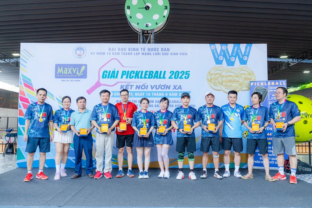 Tại giải đấu, các tập thể tiêu biểu như Khóa 39 và Khóa 46 đã được vinh danh và trao tặng Cúp “Kết nối và Lan tỏa”, nhằm ghi nhận vai trò tiên phong trong việc xây dựng và phát triển phong trào Pickleball trong cộng đồng Đại học Kinh tế Quốc dân.