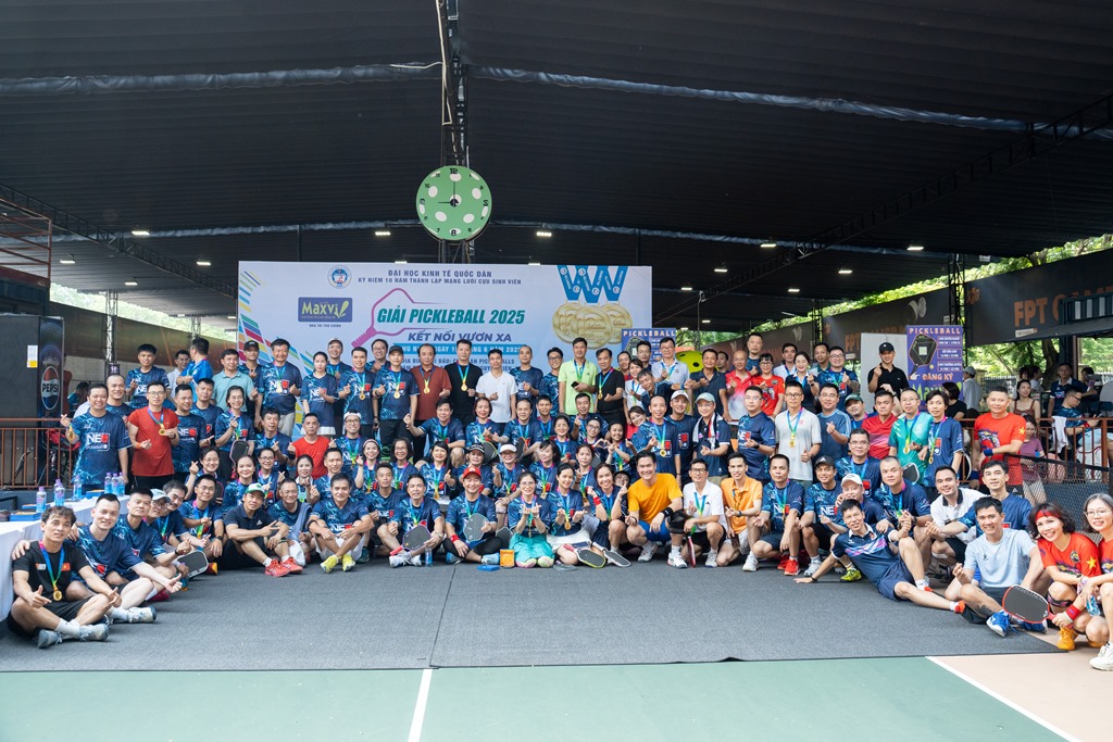 Giải Pickleball “Kết nối – Vươn xa” năm 2025 chào mừng kỷ niệm 10 năm thành lập Mạng lưới Cựu sinh viên, học viên Đại học Kinh tế Quốc dân đặc biệt hấp dẫn, sáng tạo với các tên gọi thú vị như “Cặp đôi Lão tướng”, “Cặp đôi Măng non” đã tạo nên sức hút lôi cuốn, góp phần thu hút đông đảo các thế hệ cựu sinh viên, học viên NEU cùng tham gia.