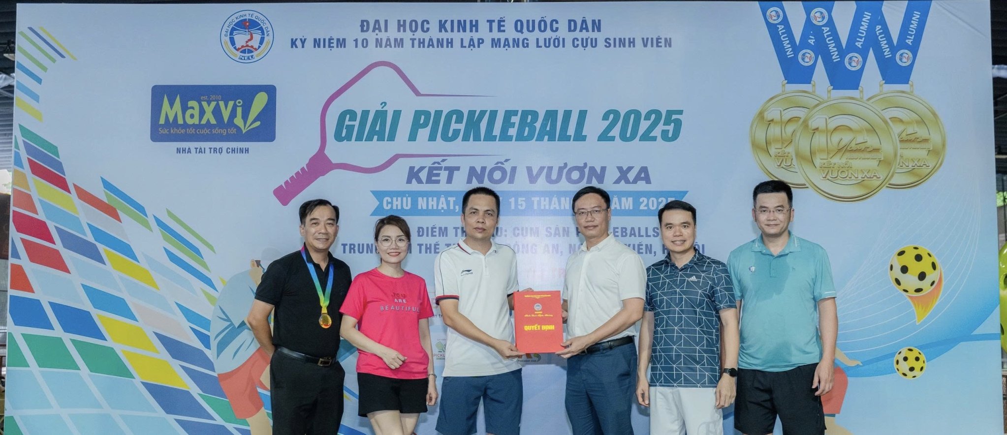 Ngày 15/6/2025, tại Cụm sân Pickzone (Nguyễn Xiển, Hà Nội), Giải Pickleball “Kết nối – Vươn xa” đã chính thức khai mạc, đánh dấu hoạt động thể thao nổi bật trong chuỗi sự kiện chào mừng kỷ niệm 10 năm thành lập Mạng lưới Cựu sinh viên, học viên Đại học Kinh tế Quốc dân.