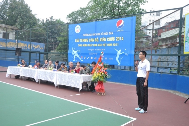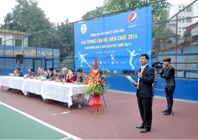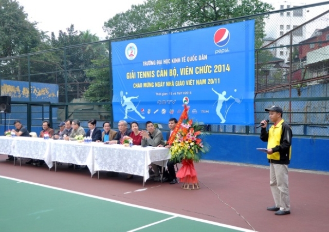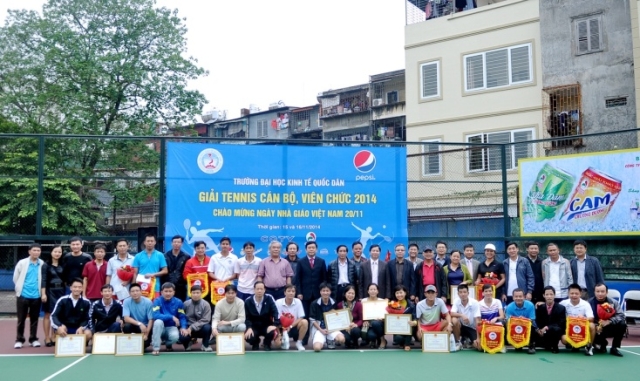 Hướng tới chào mừng ngày Nhà giáo Việt Nam 20/11, trong hai ngày 15 và 16/11/2014, trường Đại học Kinh tế quốc dân đã tổ chức thành công “Giải tennis cán bộ, viên chức năm 2014”. Giải tennis là một hoạt động truyền thống thường niên, thu hút nhiều tay vợt của nhà trường tham dự và tranh tài. Giải đấu còn có ý nghĩa hết sức quan trọng tạo sân chơi cho cán bộ, giảng viên nhà trường nhằm nâng cao thể chất để phục vụ tốt nhất cho công việc. Tham dự giải năm nay có 62 cán bộ, giảng viên đến từ 29 đơn vị trong trường.