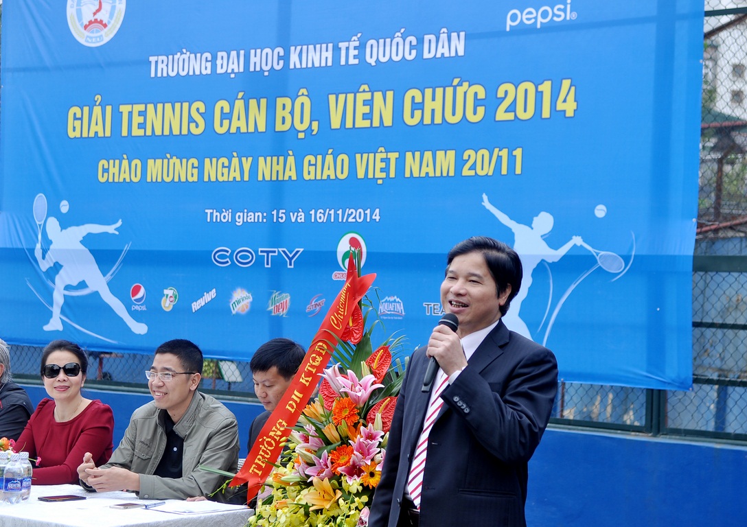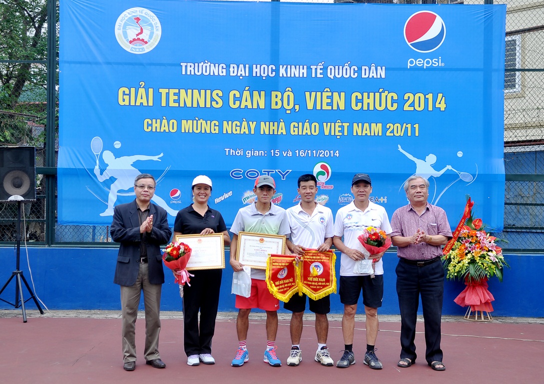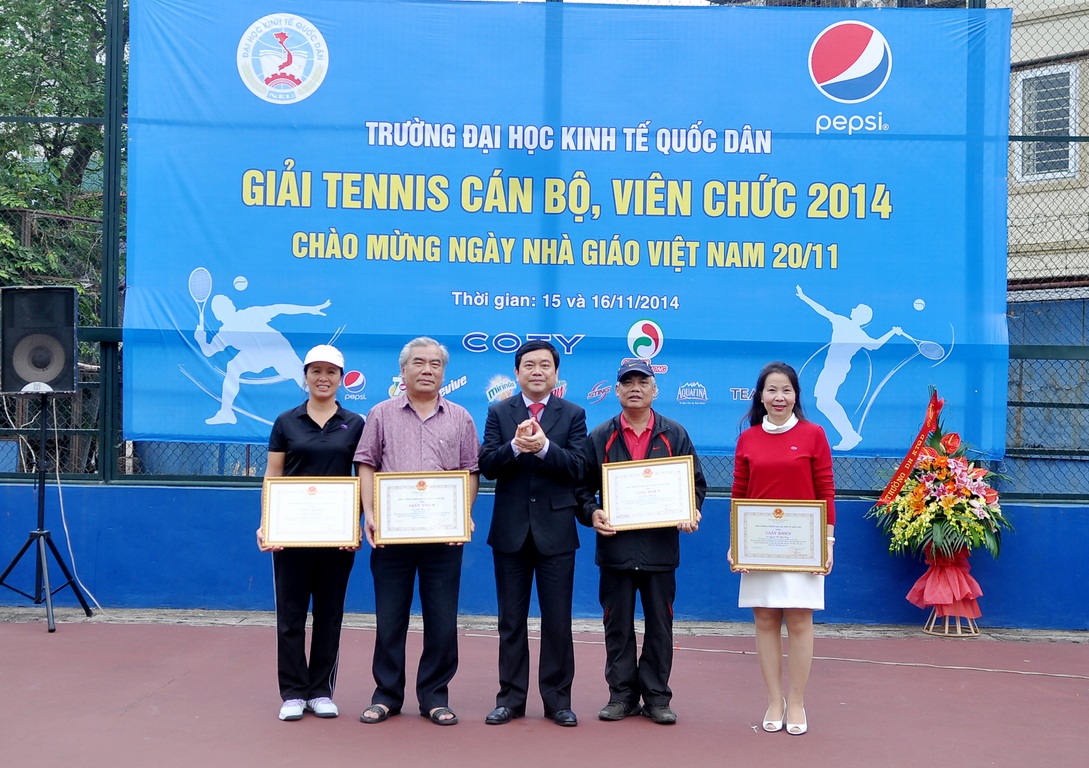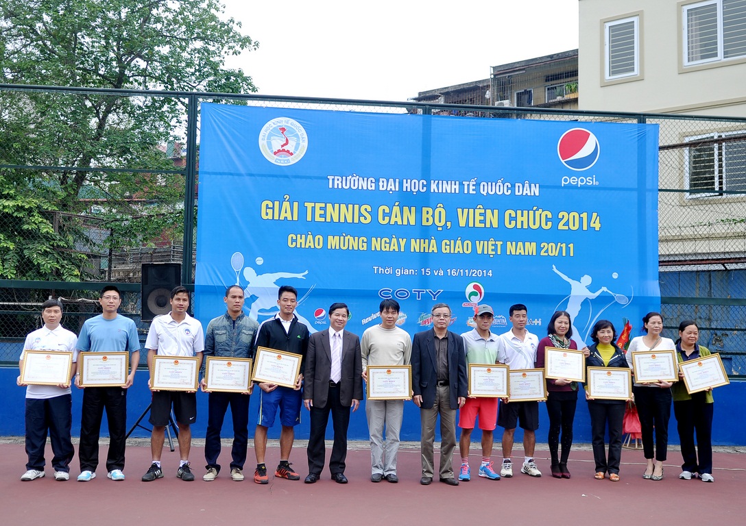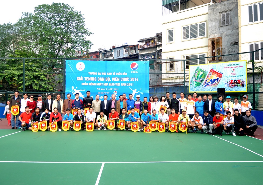 Hướng tới chào mừng ngày Nhà giáo Việt Nam 20/11, trong hai ngày 15 và 16/11/2014, trường Đại học Kinh tế quốc dân đã tổ chức thành công “Giải tennis cán bộ, viên chức năm 2014”. Giải tennis là một hoạt động truyền thống thường niên, thu hút nhiều tay vợt của nhà trường tham dự và tranh tài. Giải đấu còn có ý nghĩa hết sức quan trọng tạo sân chơi cho cán bộ, giảng viên nhà trường nhằm nâng cao thể chất để phục vụ tốt nhất cho công việc. Tham dự giải năm nay có 62 cán bộ, giảng viên đến từ 29 đơn vị trong trường.