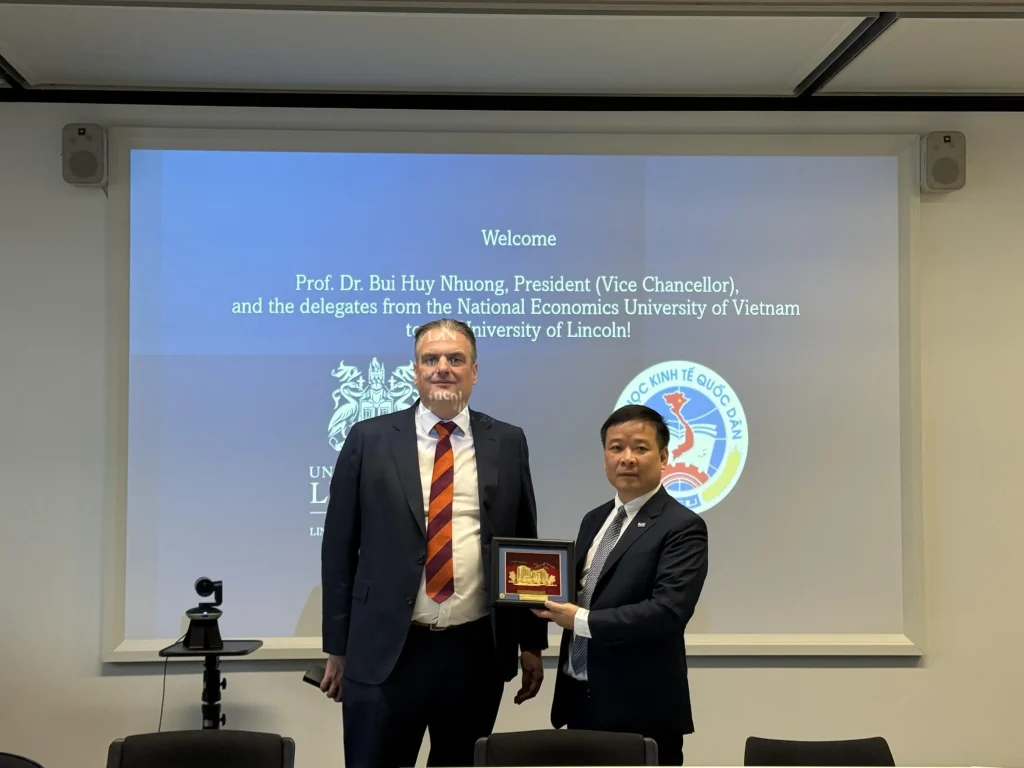 Từ ngày 21 đến 27/11/2025, đoàn công tác của Đại học Kinh tế Quốc dân do PGS.TS Bùi Huy Nhượng – Giám đốc Đại học dẫn đầu đã có chuyến thăm và làm việc tại Vương quốc Anh với các đối tác chiến lược gồm Đại học Lincoln, Đại học Coventry; đồng thời ký kết gia hạn Thỏa thuận hợp tác chiến lược với Hiệp hội Kế toán Công chứng Anh (ACCA).
