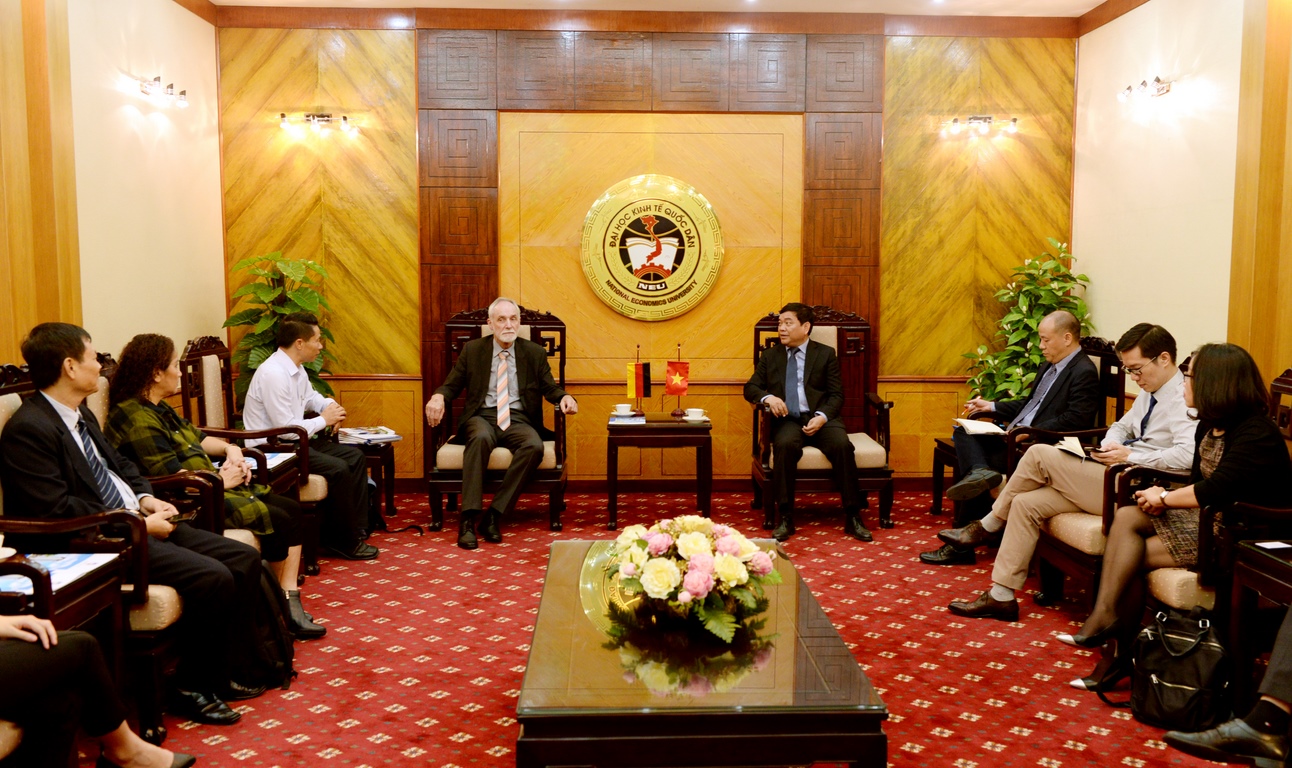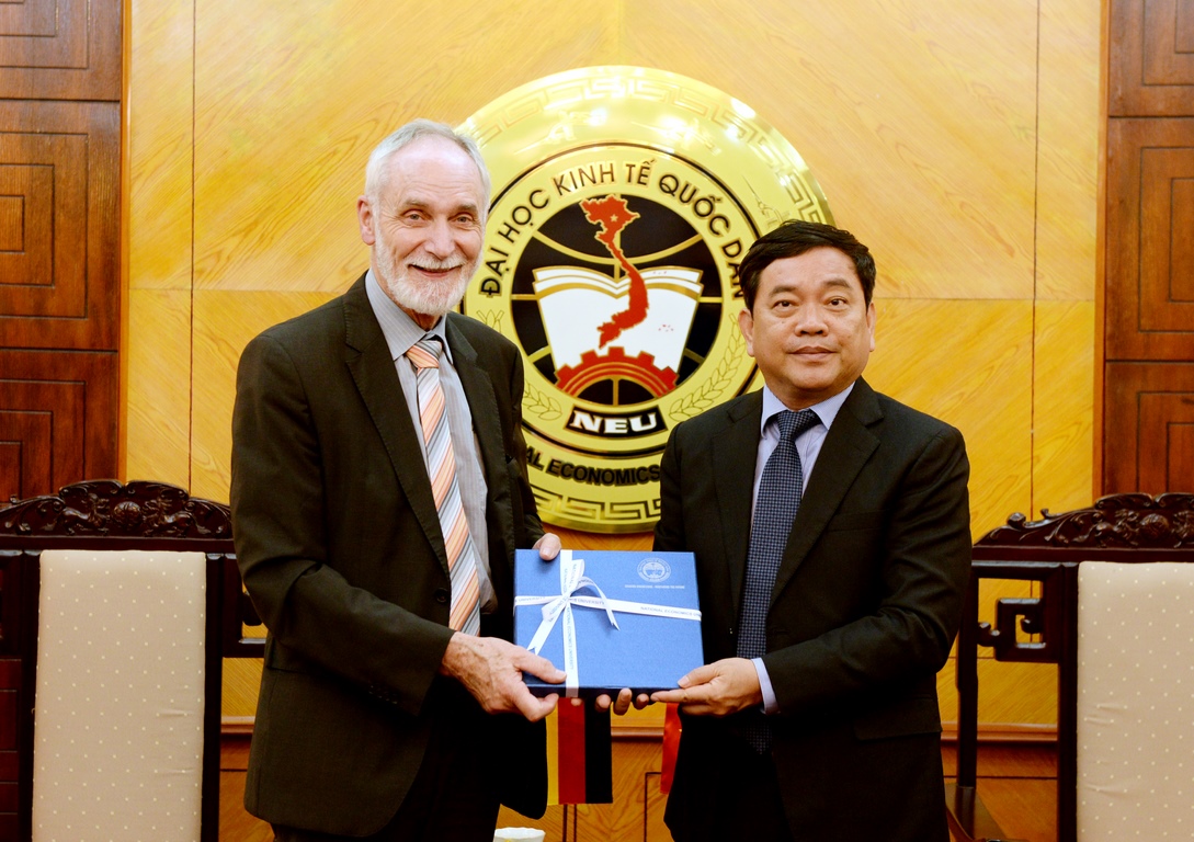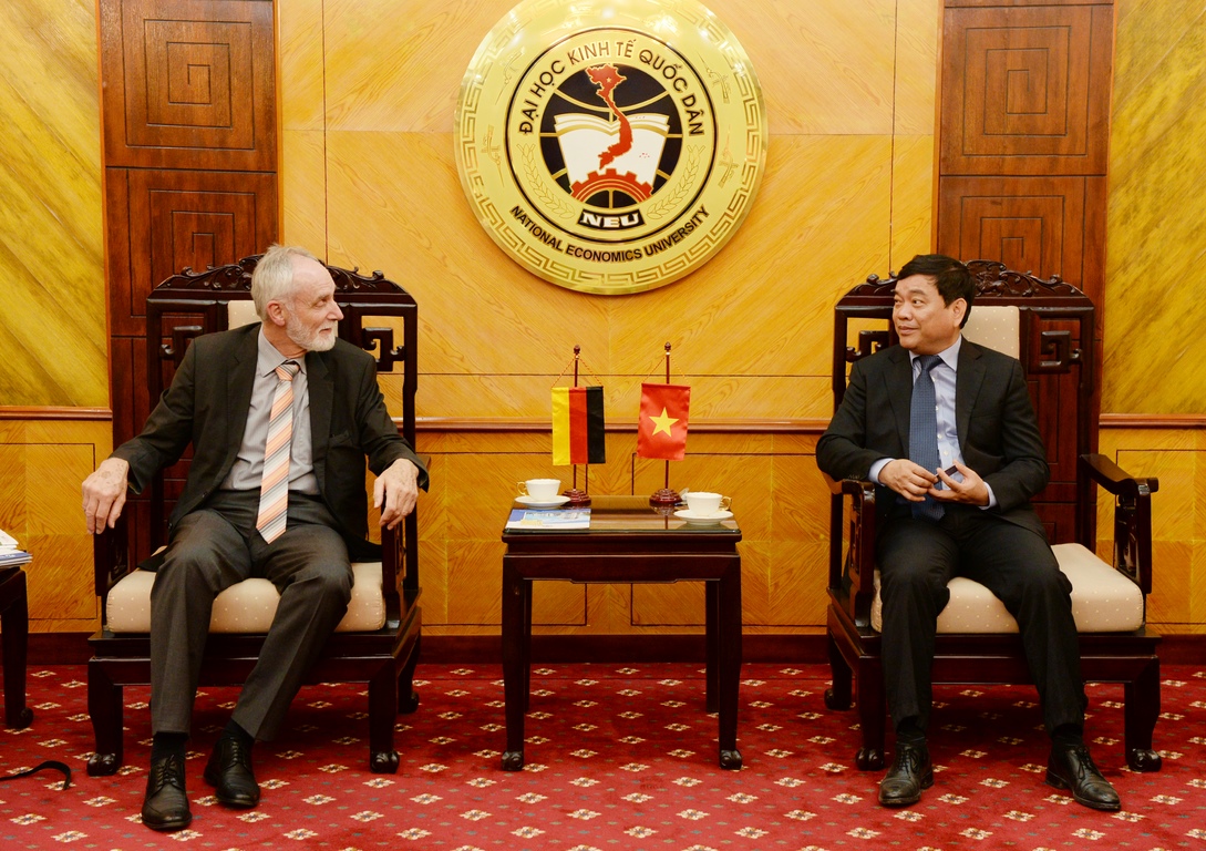Ông Herbert Schlaeger – Phó chủ tịch Tập đoàn F+U cảm ơn Giáo sư Hiệu trưởng đã dành thời gian để tiếp đón đoàn. Đây là lần đầu tiên ông Herbert Schlaeger có mặt tại Hà Nội. Ông Herbert Schlaeger cho biết Tập đoàn F+U là một tập đoàn giáo dục tư nhân đa ngành tại Đức được xây dựng từ những năm 1980. Bắt đầu từ một trong những cơ sở đào tạo nâng cao, giờ đây F+U đã trở thành Tập đoàn Giáo dục tư nhân đa ngành lớn nhất tại Đức. Theo ông Herbert Schlaeger, Tập đoàn giáo dục F+U là tập đoàn chuyên về lĩnh vực giáo dục nghề nghiệp, đặc biệt liên quan đến chuyên ngành khách sạn, du lịch, ẩm thực. Với hơn 30 năm xây dựng và phát triển, Tập đoàn hướng tới đào tạo nguồn nhân lực chất lượng cao, gắn đào tạo lý thuyết với thực hành, hướng theo nhu cầu nguồn nhân lực của doanh nghiệp. Trong bối cảnh du lịch Việt Nam đang ngày càng phát triển, Tập đoàn rất quan tâm đến công tác đào tạo nguồn nhân lực du lịch. Ông mong muốn trong thời gian tới, Tập đoàn F+U sẽ có cơ hội mở rộng hợp tác cùng với Khoa Du lịch và Khách sạn, trường Đại học Kinh tế Quốc dân trong lĩnh vực đào tạo về du lịch và khách sạn.