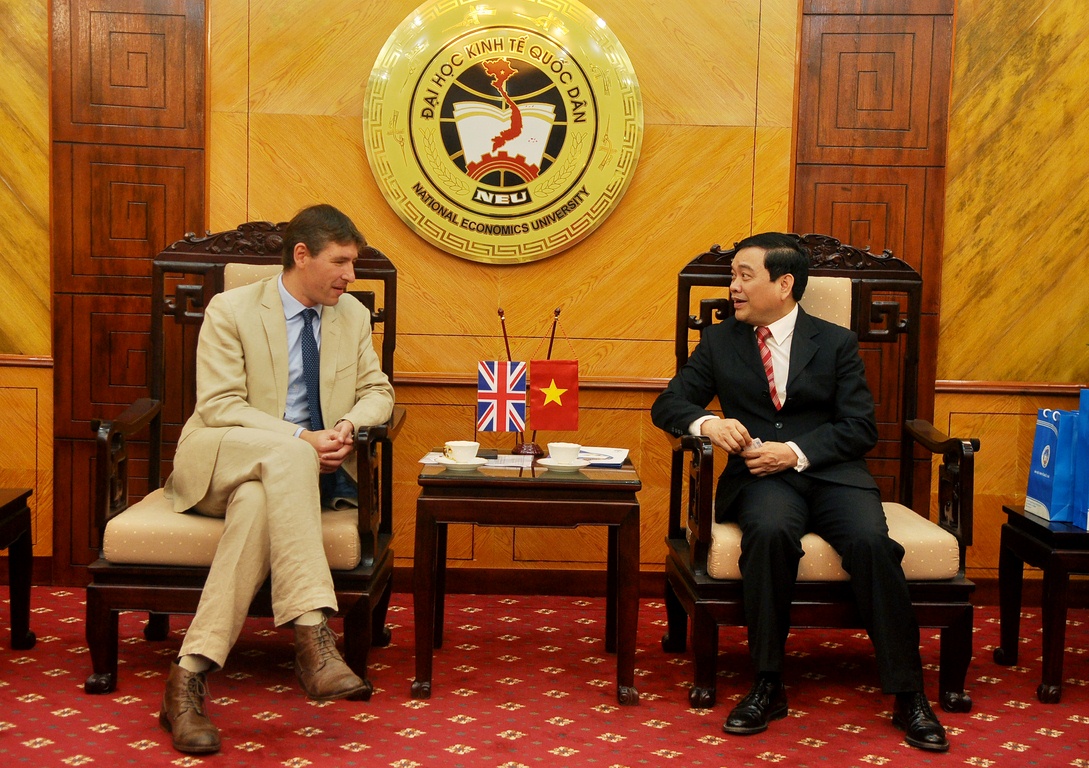 Tới dự Hội thảo “Doanh nghiệp Xã hội ở Việt Nam: vai trò của Trường Đại học và các Tổ chức nghiên cứu” do Trường Đại học Kinh tế quốc dân (ĐH KTQD) phối hợp với Hội đồng Anh tổ chức, Đại sứ Vương quốc Anh tại Việt Nam Ông Giles Lever và Bà Cherry Gough – Giám đốc Hội đồng Anh tại Việt Nam cùng các thành viên trong đoàn đã có cuộc gặp gỡ và trao đổi với lãnh đạo Trường Đại học Kinh tế quốc dân.