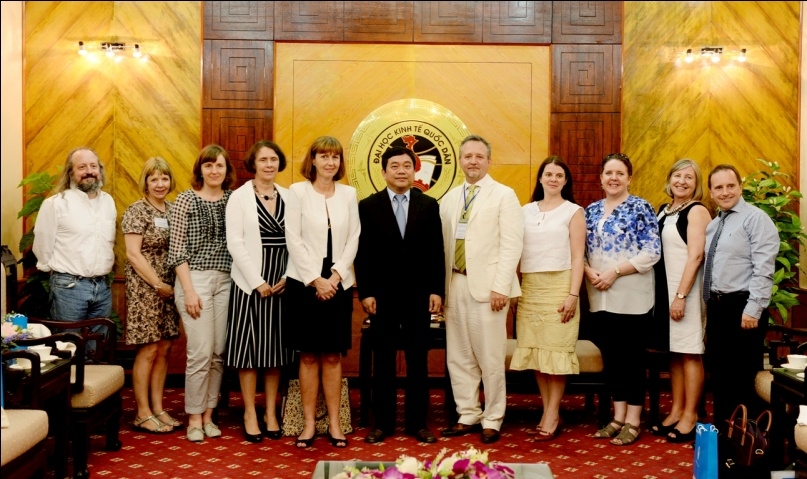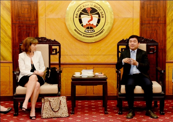 Nhân dịp này, đoàn đại biểu các trường đại học Ireland đã có chuyến thăm và làm việc tại trường Đại học Kinh tế quốc dân. Đón tiếp đoàn có GS.TS. Trần Thọ Đạt – Hiệu trưởng, Bí thư Đảng ủy nhà trường. Tại buổi làm việc, đại diện của 6 trường ĐH Ai-len bày tỏ mong muốn hợp tác với trường ĐH KTQD trong đào tạo và nghiên cứu trên lĩnh vực Kinh tế và Quản trị Kinh doanh. GS.TS. Trần Thọ Đạt đánh giá cao chuyến thăm của đoàn đại biểu các trường ĐH Ai-len tới ĐH KTQD và khẳng định tiềm năng hợp tác giữa trường ĐH KTQD và các trường ĐH Ai-len là rất lớn và chuyến thăm này là bước khởi đầu cho mối quan hệ hợp tác trong đào tạo và nghiên cứu giữa trường ĐH KTQD và các trường ĐH Ireland.