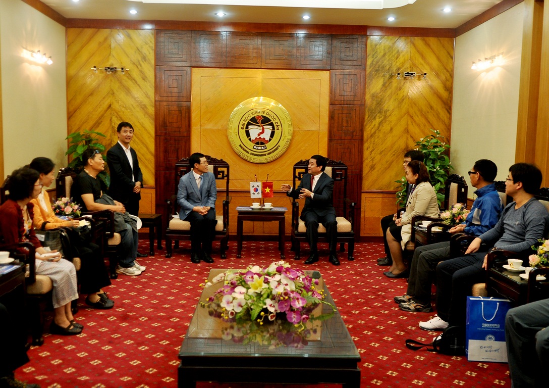 Vừa qua, Trường Đại học Kinh tế Quốc dân đã có buổi tiếp và làm việc với Đại học Quốc gia Mokpo, Hàn Quốc. Về phía Đại học Kinh tế Quốc dân có: GS.TS Trần Thọ Đạt – Hiệu trưởng nhà trường; PGS.TS Nguyễn Thị Thanh Thủy – Phó trưởng khoa Luật; TS. Đào Thanh Tùng – Phó trưởng Phòng HTQT. Về phía Đoàn Đại học Quốc gia Mokpo có: ông Park Kuk Seon – Trưởng Ban Giáo vụ Đào tạo – Hành chính Quản trị làm trưởng đoàn vả đại diện các đơn vị phòng ban của Đại học Quốc gia Mokpo.