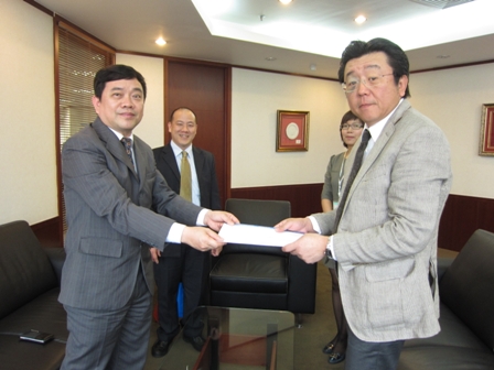 GS.TS Trần Thọ Đạt-Phó Hiệu trưởng đã chuyển thư cảm ơn của GS. Hiệu trưởng Nguyễn Văn Nam tới Ông Ikemura. Thay mặt lãnh đạo Nhà trường, GS .TS Trần Thọ Đạt đã cảm ơn những ủng hộ và đóng góp tích cực của Tập đòan Sumitomo và cá nhân Ông Ikemura trong những thành công của hợp tác giữa hai bên.