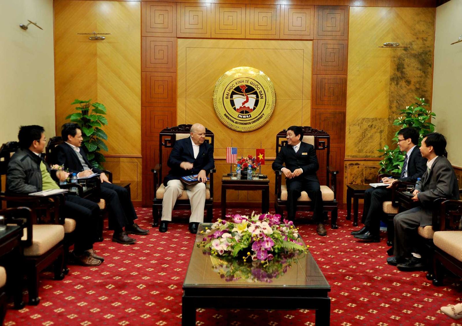 Chiều ngày 19 tháng 12 năm 2013, tại phòng Khánh tiết G2N10, GS.TS Trần Thọ Đạt – Phó Hiệu trưởng đã có buổi tiếp và làm việc với ông Timothy Cole, Hiệu trưởng Trường Đại học United States, Mỹ. Cùng tiếp đoàn còn có PGS.TS Lê Công Hoa – Trưởng khoa Quản trị Kinh doanh, TS. Nguyễn Thành Hiếu – Phó Trưởng khoa Quản trị Kinh doanh, ThS Trương Tuấn Anh – giảng viên khoa Quản trị Kinh doanh và TS. Đào Thanh Tùng – Phó Trưởng phòng Hợp tác Quốc tế.