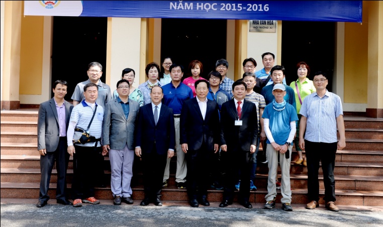Lãnh đạo và sinh viên hai trường chụp ảnh lưu niệm