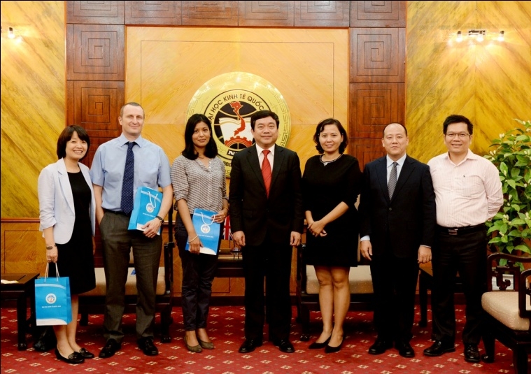 Vừa qua, đoàn cán bộ Hội đồng Anh do bà Jakira Khanam – Giám đốc khu vực về các Chương trình Xã hội dẫn đầu; cùng ông Ian Robinson – Phó Giám đốc và bà Trần Thị Hồng Gấm – Quản lý Chương trình Xã hội và Phát triển đã có chuyến thăm và làm việc tại trường Đại học Kinh tế quốc dân (ĐH KTQD). Đón tiếp đoàn có GS.TS Trần Thọ Đạt – Hiệu trưởng, Bí thư Đảng ủy nhà trường; PGS.TS. Phạm Trương Hoàng – Trưởng phòng HTQT và lãnh đạo khoa Quản trị Kinh doanh.
