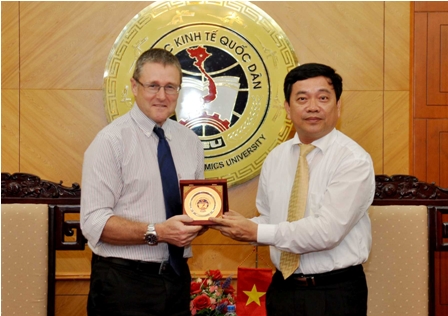 GS.TS. Trần Thọ Đạt trao biểu trưng của trường ĐHKTQD cho ông Dave Taylor