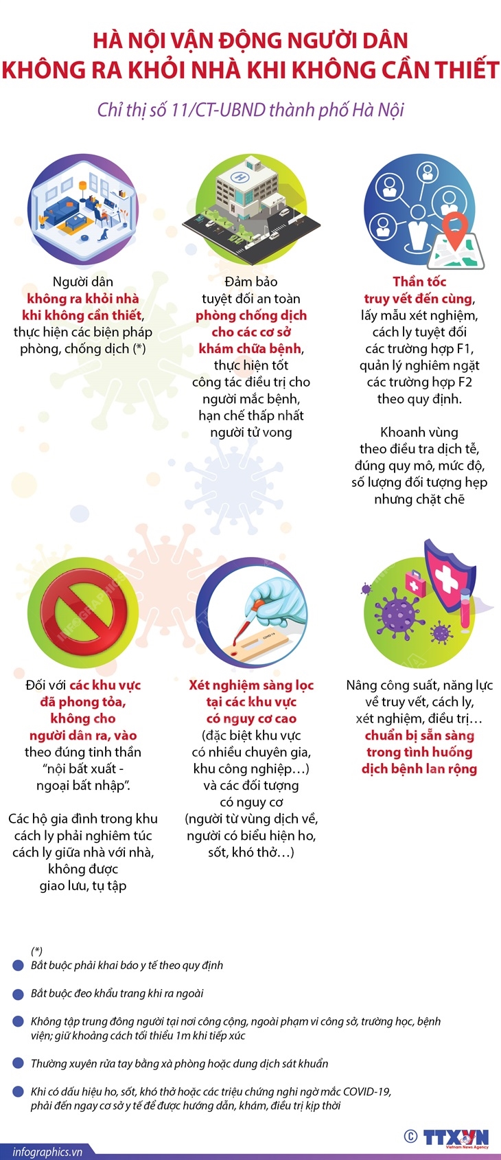 Chủ tịch UBND thành phố Hà Nội vừa ban hành Chỉ thị số 11/CT-UBND yêu cầu tăng cường thực hiện quyết liệt các biện pháp phòng, chống dịch COVID-19 trong tình hình mới.
