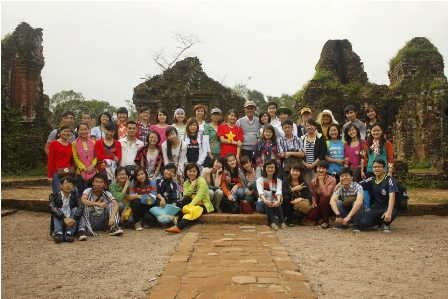 Thầy và trò K51 Khoa Du lịch Khách sạn chụp ảnh lưu niệm cùng HDV địa phương tại Khu đền tháp Mỹ Sơn – Quảng Nam
