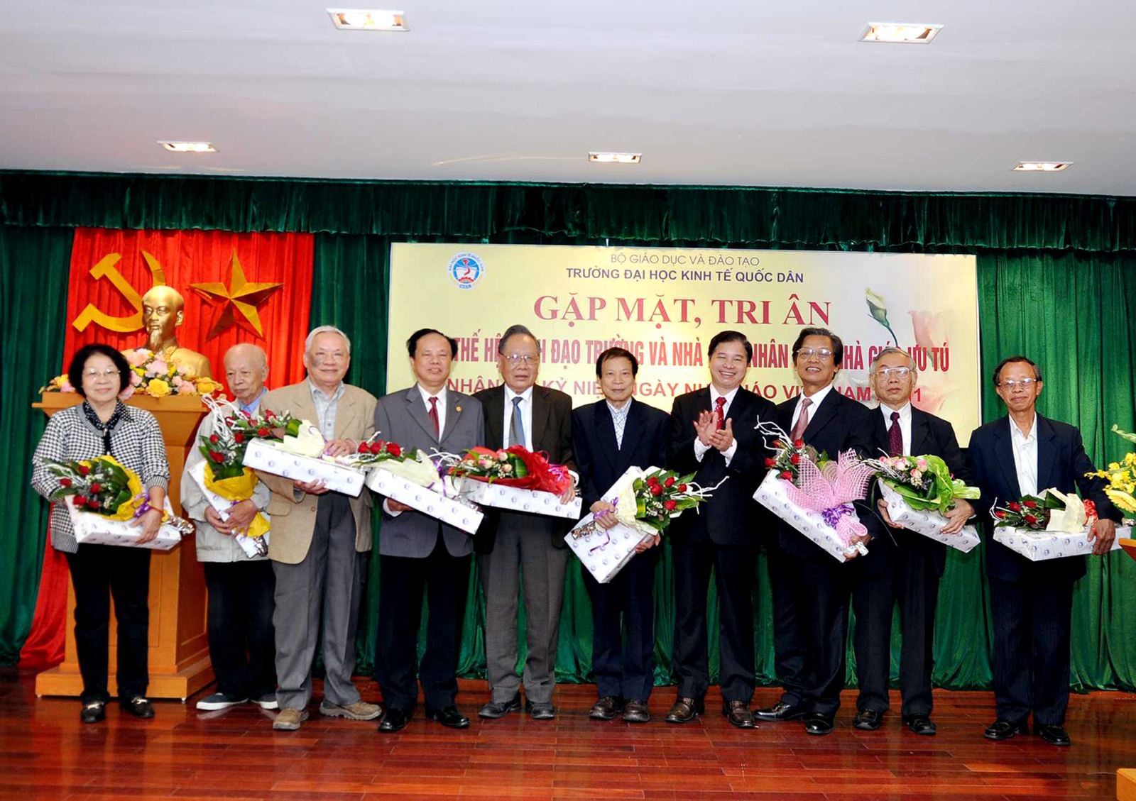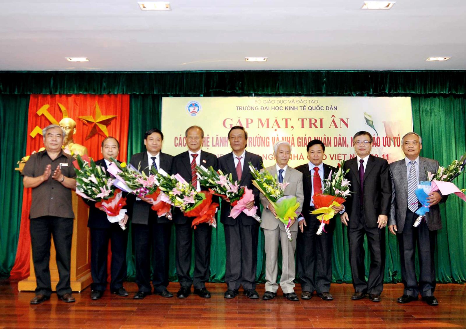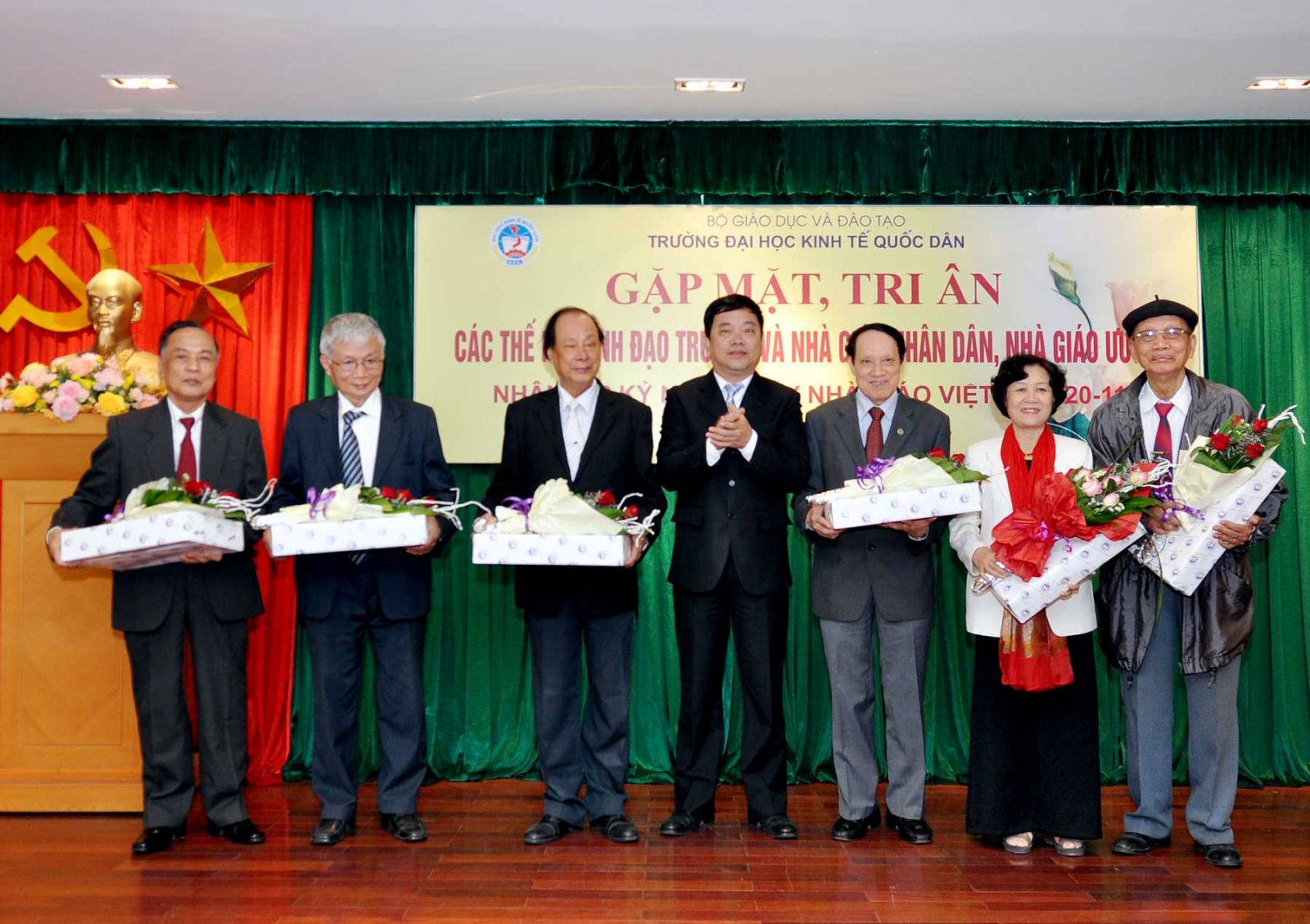 Buổi sáng 19/11/2013, một sáng mùa thu với tiết trời hơi hơi se lạnh, nhưng trong cái ấm bừng và nhộn nhịp của giáo giới khắp cả nước đang hồ hởi tổ chức các hoạt động thiết thực kỷ niệm Ngày truyền thống Nhà giáo Việt Nam, với trường Đại học Kinh tế quốc dân hôm nay còn khác hẳn những ngày khác, những năm khác là trong không khí nhộn nhịp của Trường, người ta nhận thấy hầu hết các thế hệ lãnh đạo, Nhà giáo Nhân dân, Nhà giáo Ưu tú đang hòa cùng dòng người, tay bắt mặt mừng đồng nghiệp cùng nhau đến Hội trường đa năng G2, Nhà 10 để hội ngộ buổi gặp mặt tri ân do Nhà trường tổ chức nhân dịp kỷ niệm Ngày Nhà giáo Việt Nam.