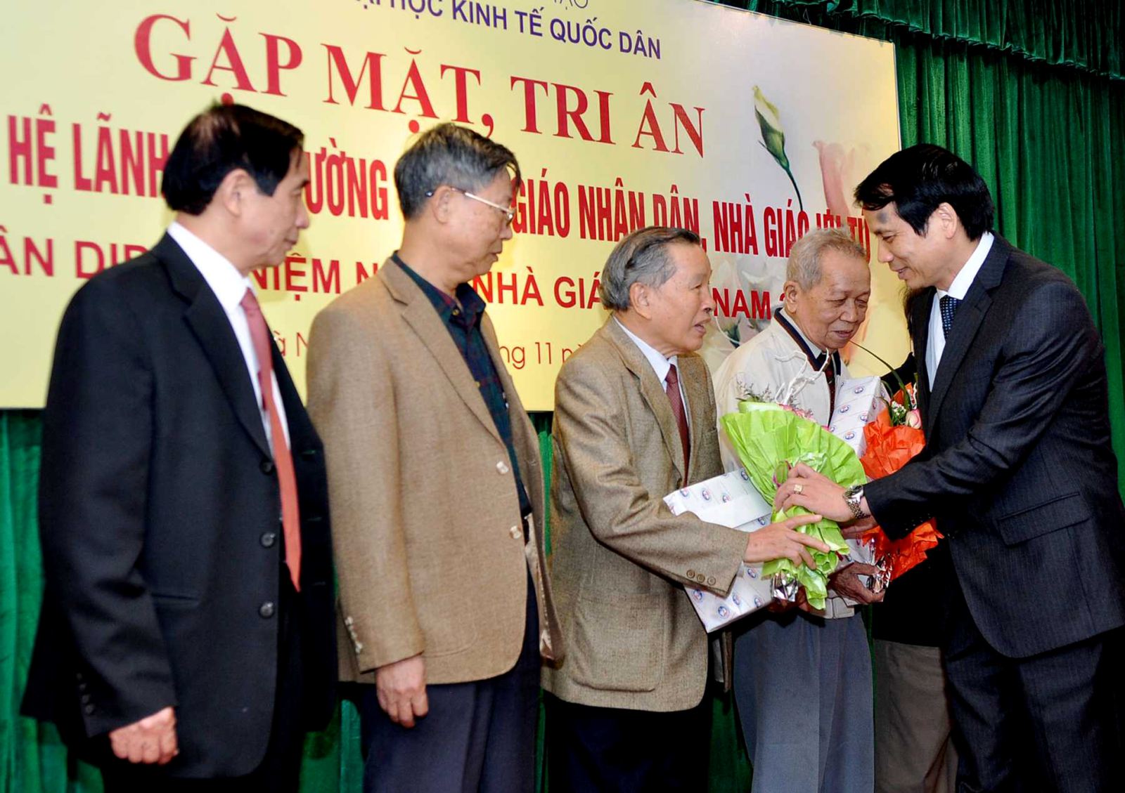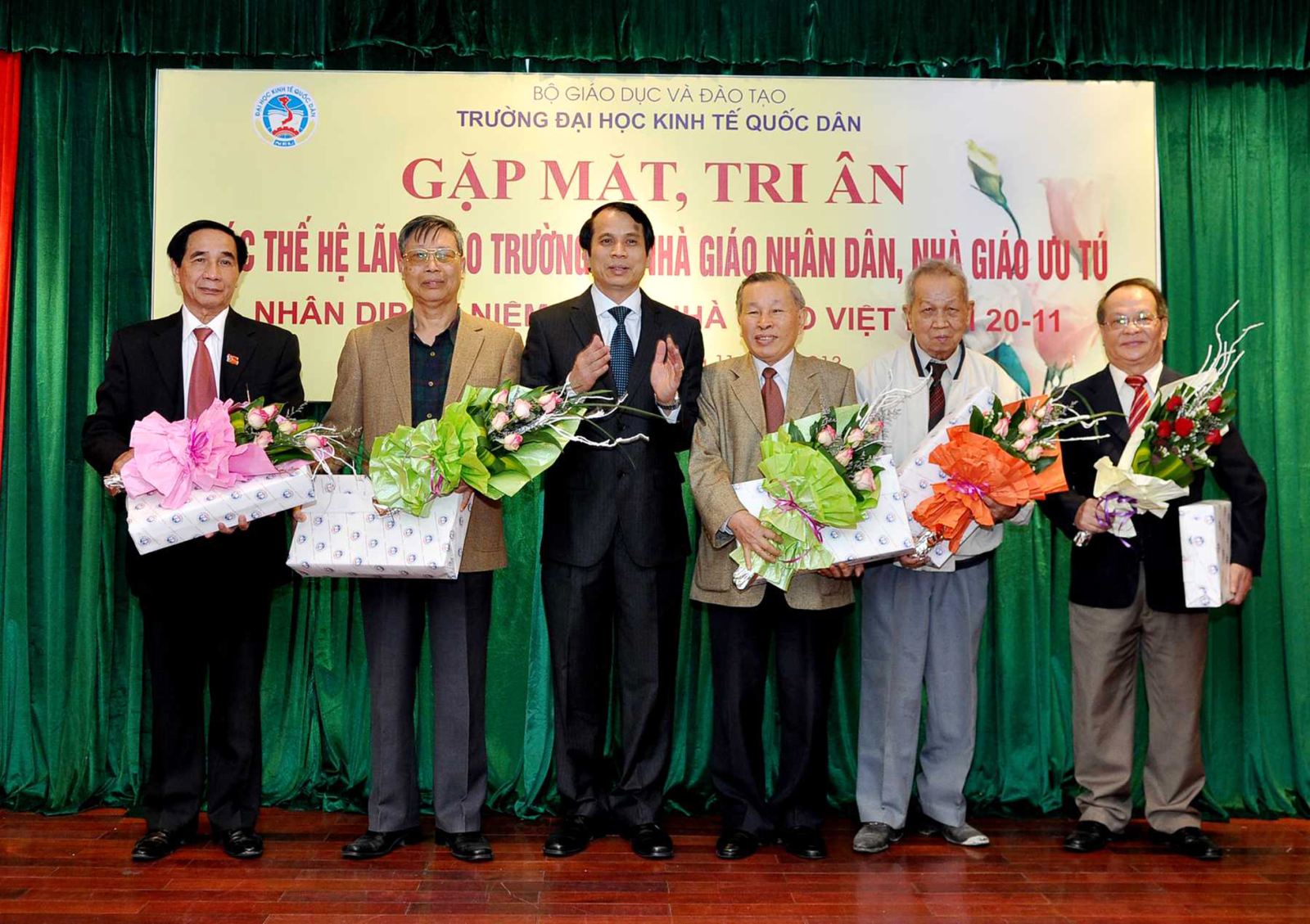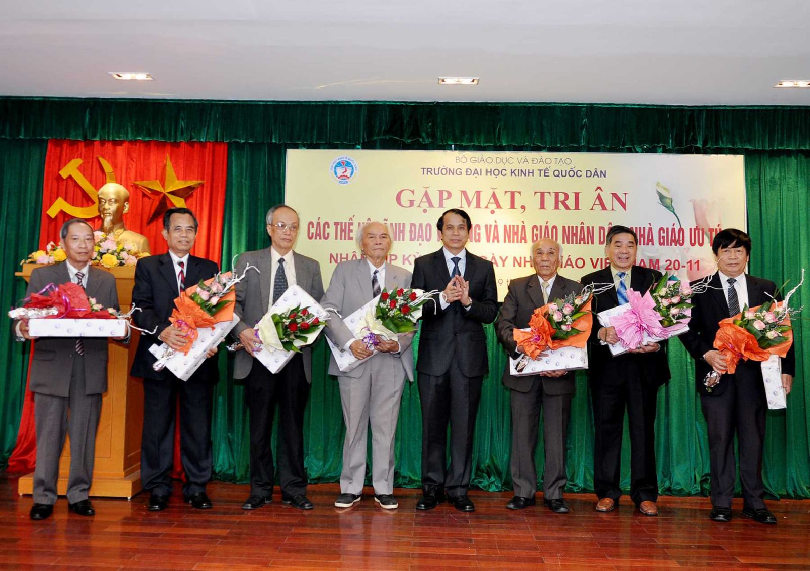 Buổi sáng 19/11/2013, một sáng mùa thu với tiết trời hơi hơi se lạnh, nhưng trong cái ấm bừng và nhộn nhịp của giáo giới khắp cả nước đang hồ hởi tổ chức các hoạt động thiết thực kỷ niệm Ngày truyền thống Nhà giáo Việt Nam, với trường Đại học Kinh tế quốc dân hôm nay còn khác hẳn những ngày khác, những năm khác là trong không khí nhộn nhịp của Trường, người ta nhận thấy hầu hết các thế hệ lãnh đạo, Nhà giáo Nhân dân, Nhà giáo Ưu tú đang hòa cùng dòng người, tay bắt mặt mừng đồng nghiệp cùng nhau đến Hội trường đa năng G2, Nhà 10 để hội ngộ buổi gặp mặt tri ân do Nhà trường tổ chức nhân dịp kỷ niệm Ngày Nhà giáo Việt Nam.