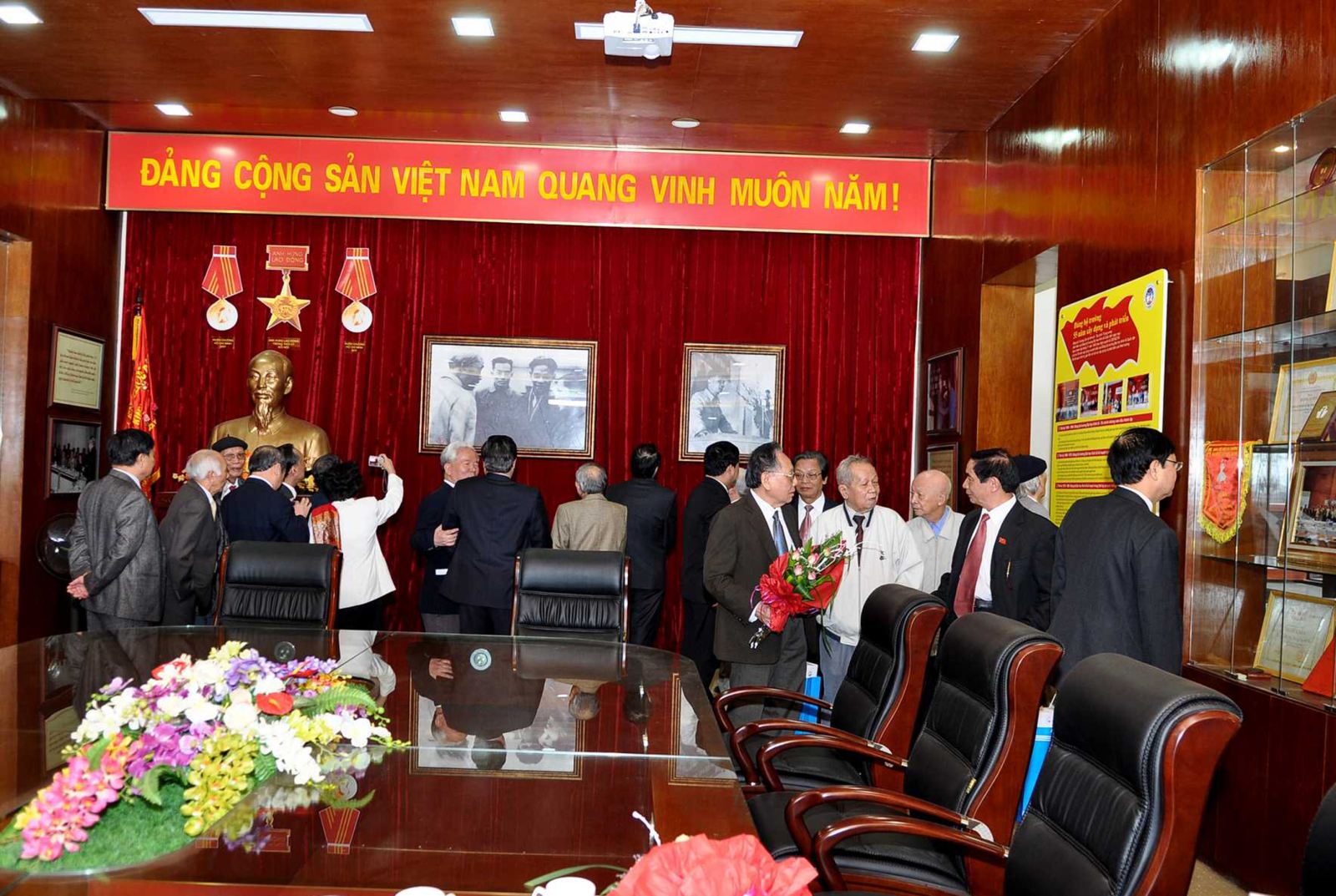 Tiếp đón các Nhà giáo, các thế hệ lãnh đạo chủ chốt của trường có đầy đủ Ban lãnh đạo trường nhiệm kỳ 2013- 2018: PGS.TS. Phạm Mạnh Hùng – Thứ trưởng Bộ Giáo dục và Đào tạo kiêm Bí thư Đảng uỷ, Hiệu trưởng; Các PHT gồm GS.TS Phan Công Nghĩa,GS.TS Phạm Quang Trung, GS.TS Trần Thọ Đạt; GS.TS Nguyễn Viết Lâm- Phó bí thư TT đảng ủy, PGS.TS Đào thị Phương Liên- Chủ tịch CĐT; GS.TS Hoàng Ngọc Việt- Chủ tịch Hội CCB cùng đông đảo viên chức lãnh đạo các đơn vị trực thuộc của trường.