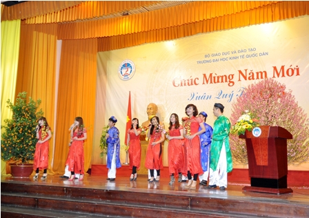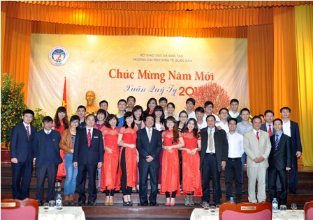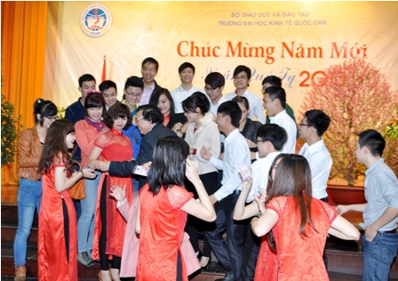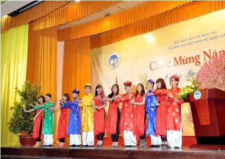 Buổi lễ gặp mặt đầu xuân và chúc mừng năm mới đã diễn ra trong khí tưng bừng, náo nhiệt. Những lời ca tiếng hát, những ly rượu nồng, những nụ cười rạng rỡ cùng những lời chúc mừng tốt đẹp nhất báo hiệu khởi đầu cho một năm mới đầy sức khỏe, thành công và hạnh phúc cho mỗi thành viên dưới mái nhà Đại học Kinh tế Quốc dân và chúc cho ngôi nhà chung của chúng ta sẽ ngày một thêm phát triển vững mạnh, xứng danh với “thương hiệu” một trường Đại học hàng đầu trong khối các trường đào tạo về Kinh tế và Quản trị Kinh doanh.