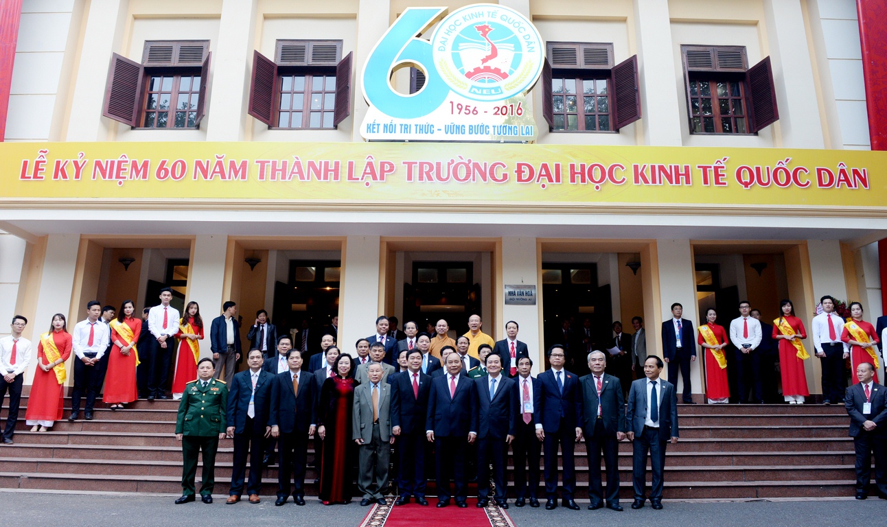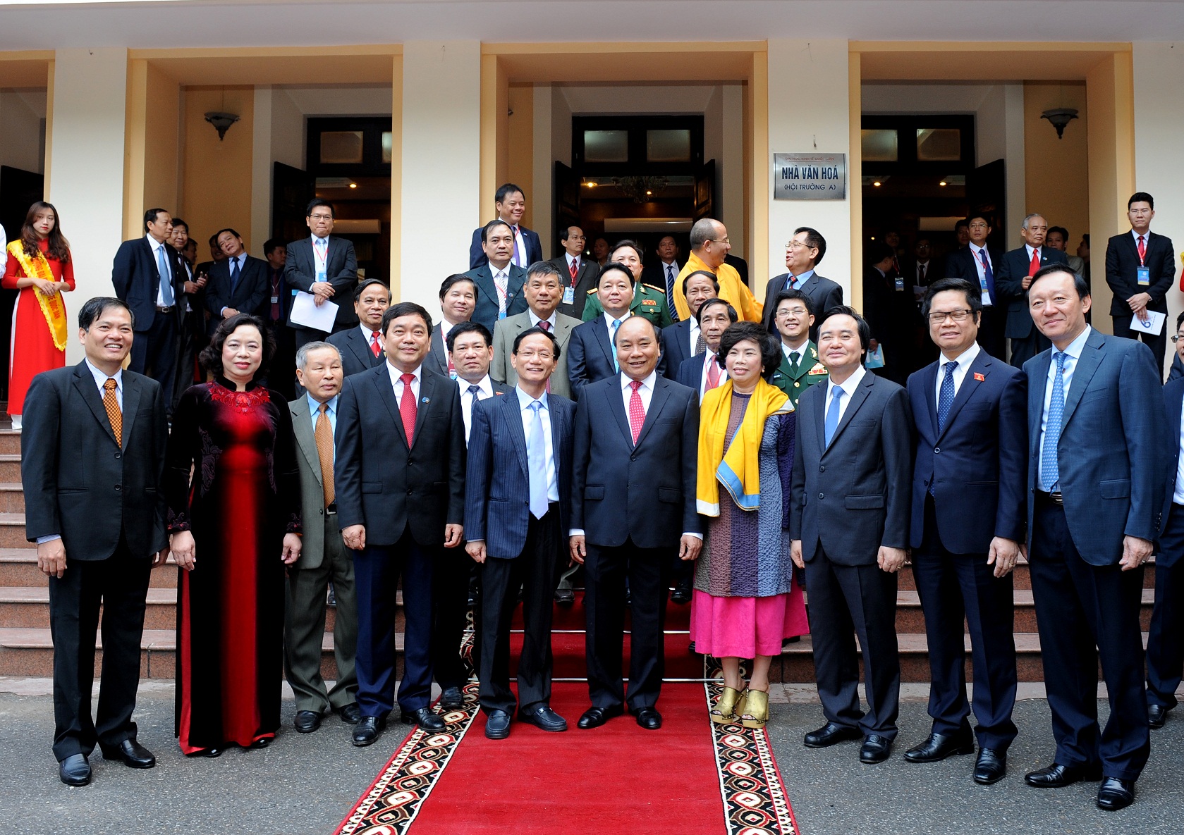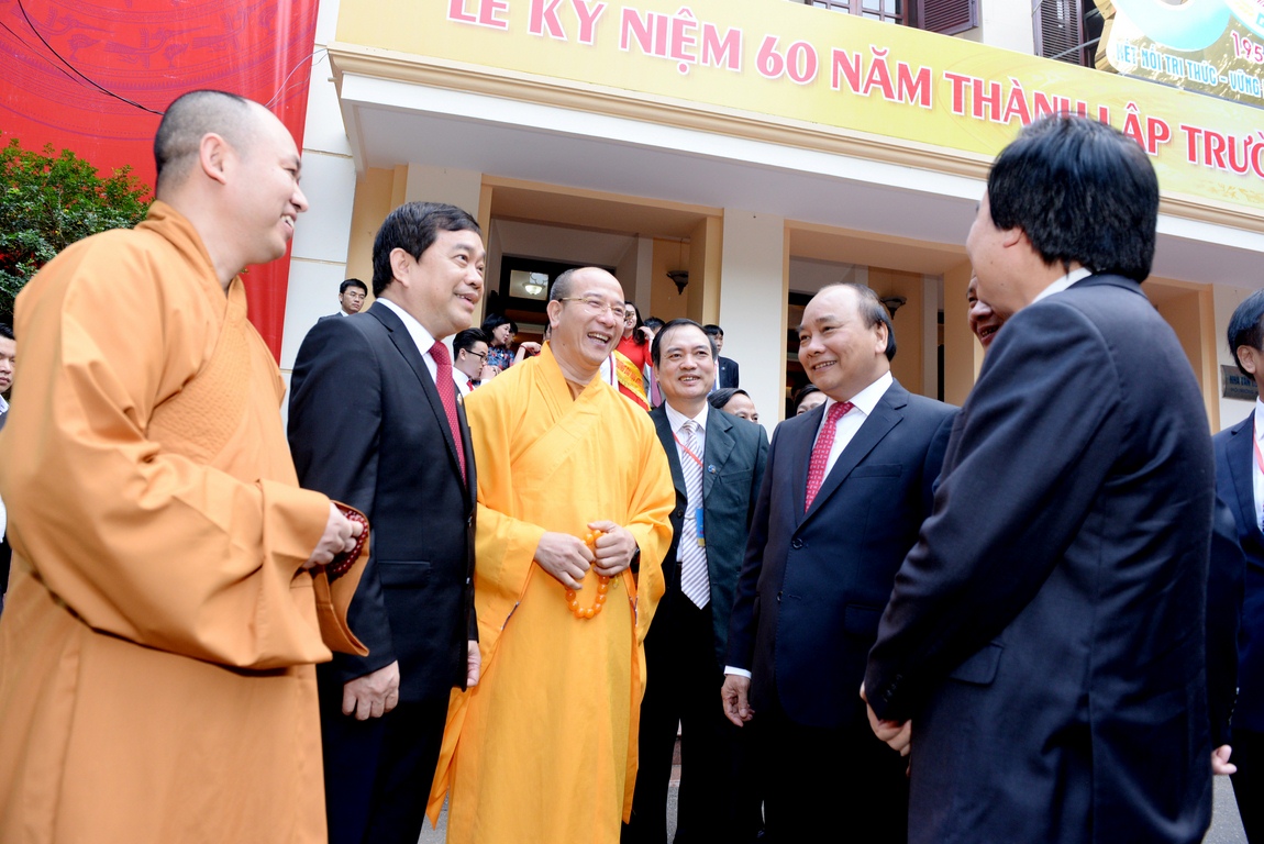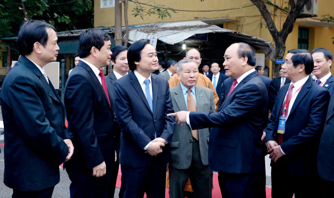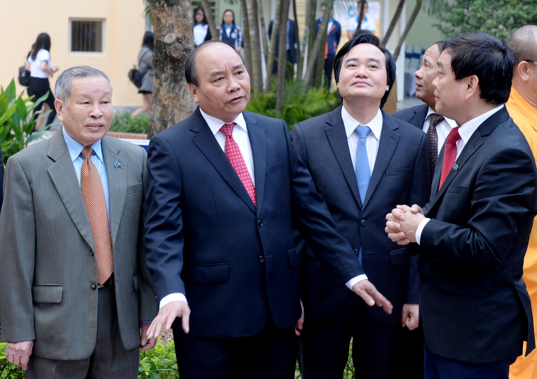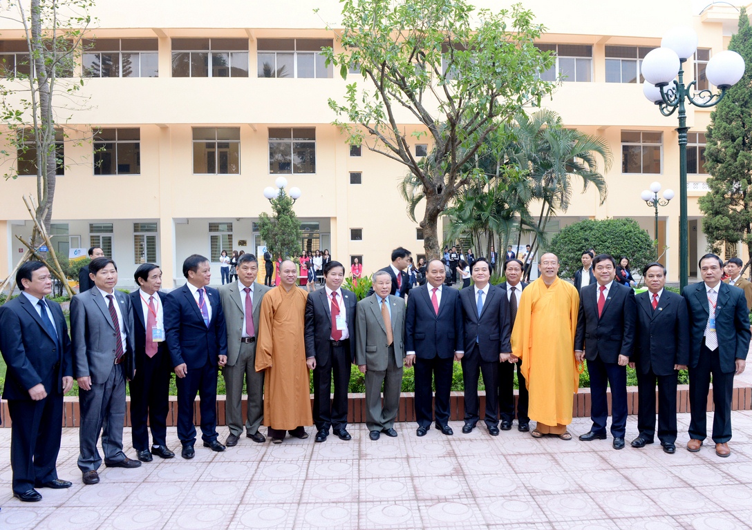 Hình ảnh Thủ tướng Nguyễn Xuân Phúc cùng đại biểu, thầy cô giáo và chụp ảnh lưu niệm tại Lễ kỷ niệm 60 năm thành lập Trường.