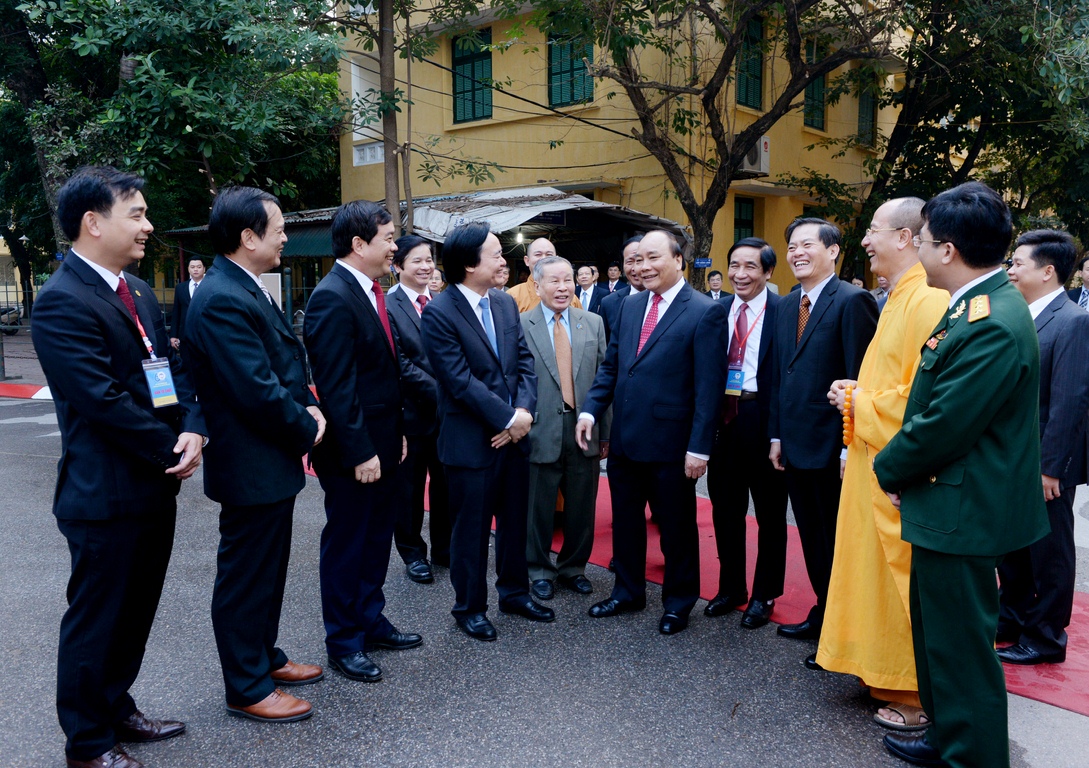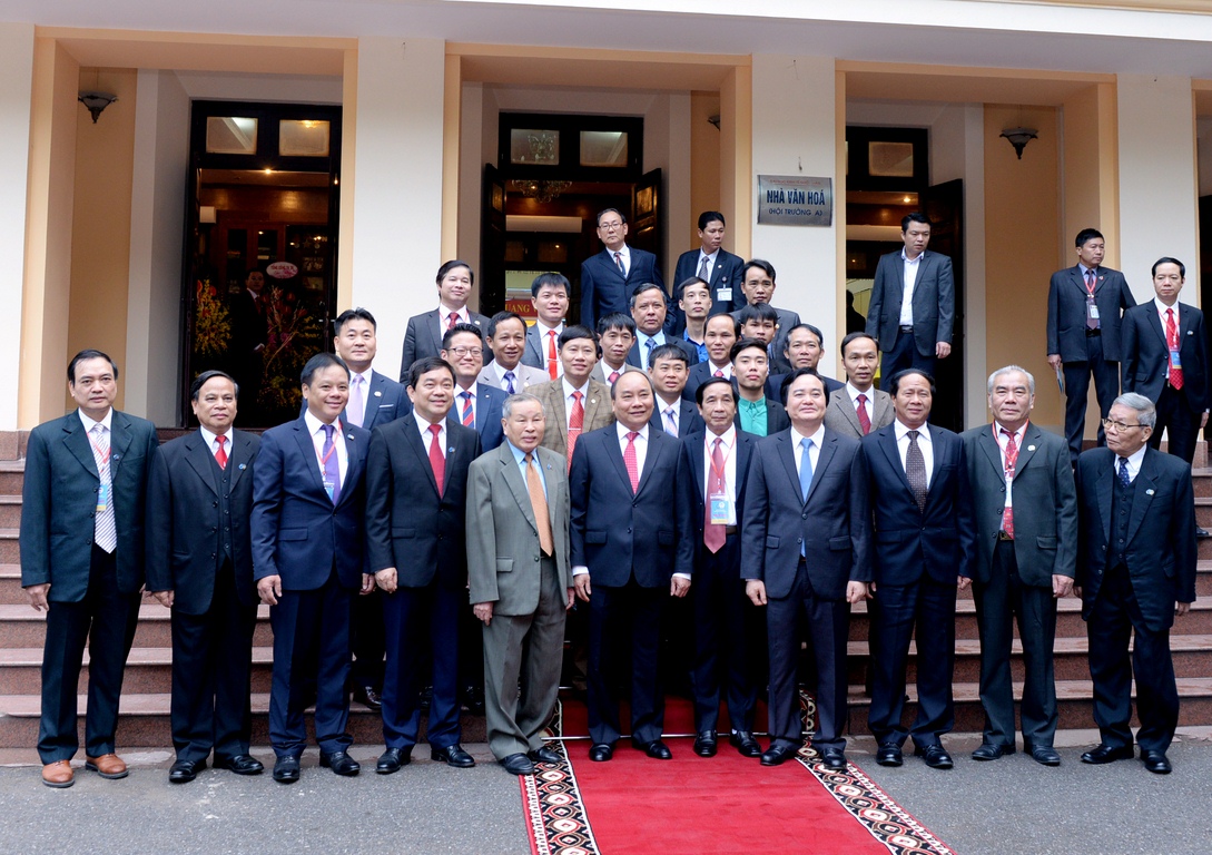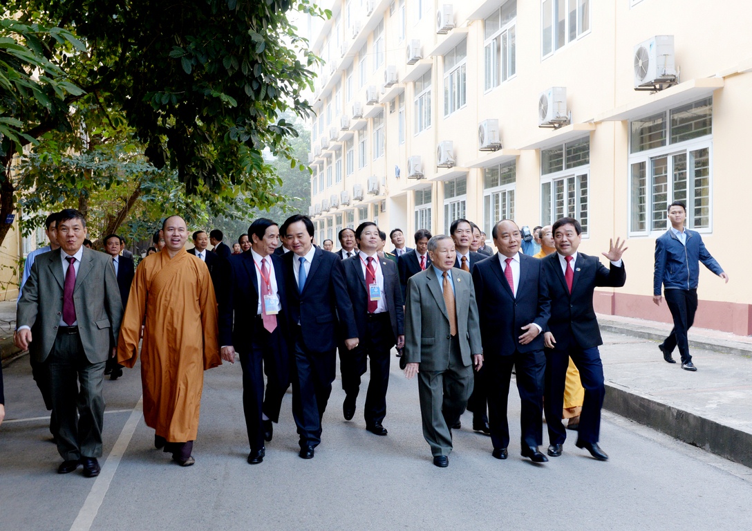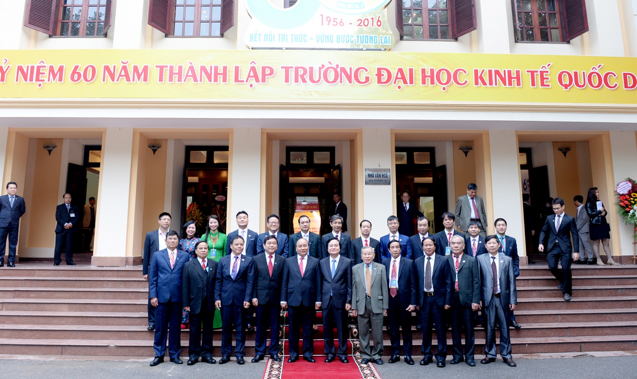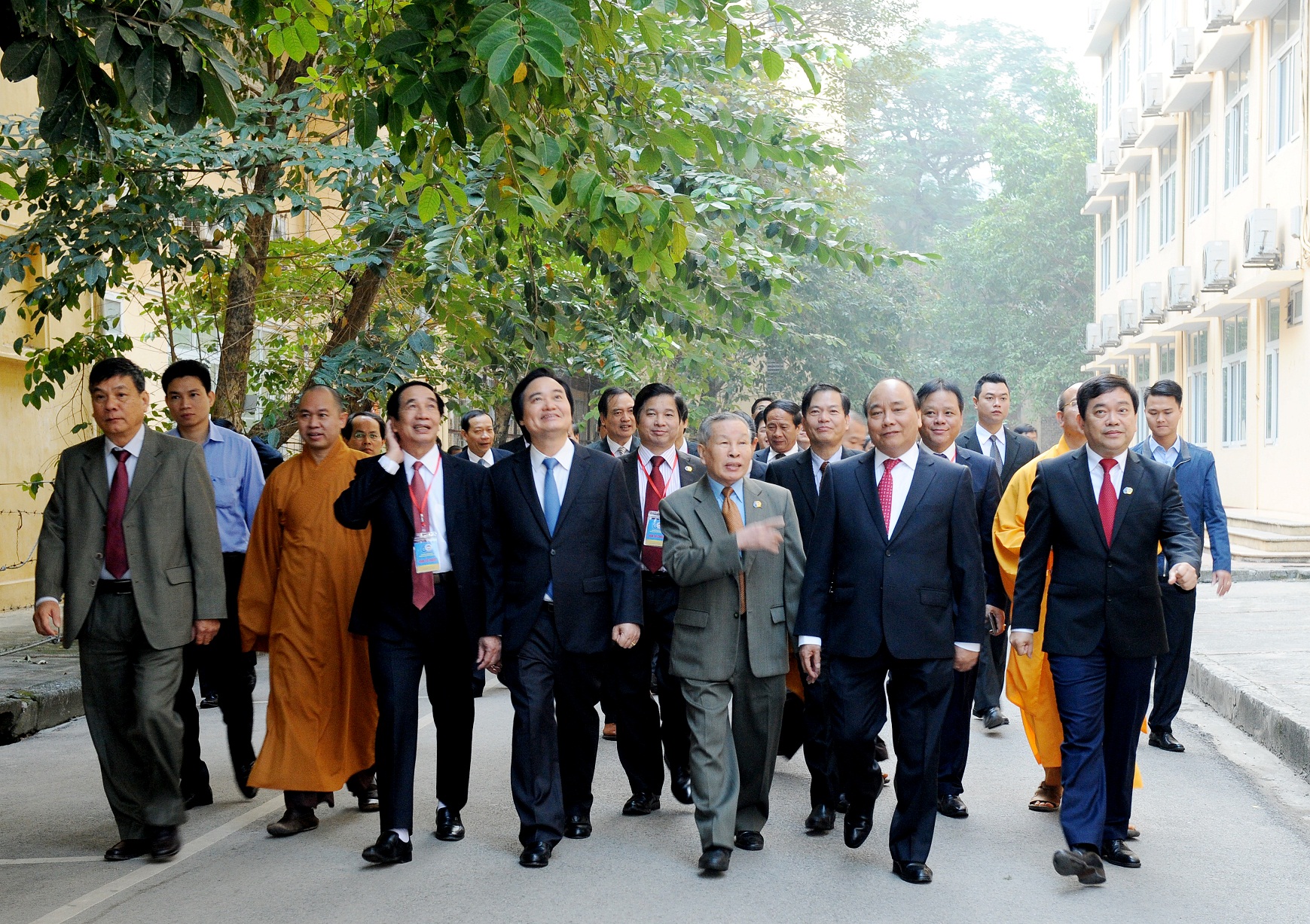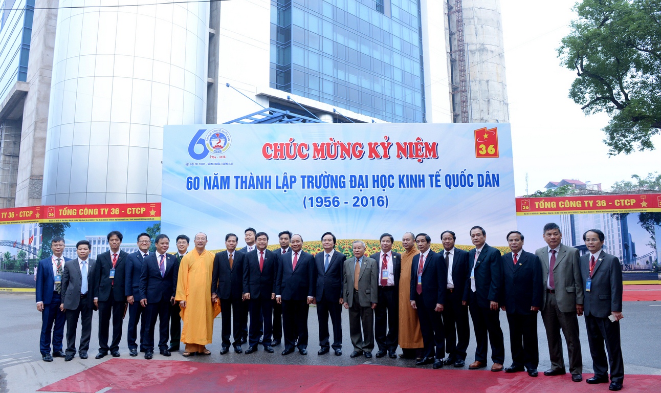 Hình ảnh Thủ tướng Nguyễn Xuân Phúc cùng đại biểu, thầy cô giáo và chụp ảnh lưu niệm tại Lễ kỷ niệm 60 năm thành lập Trường.