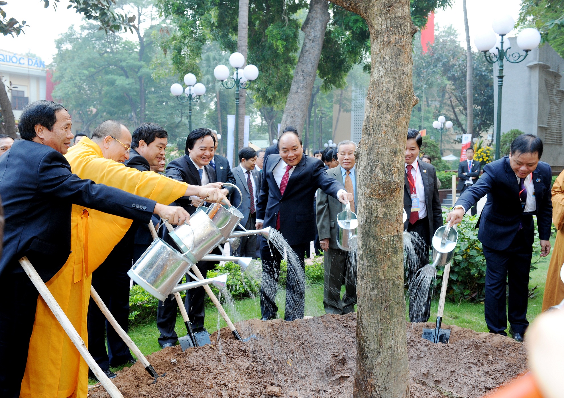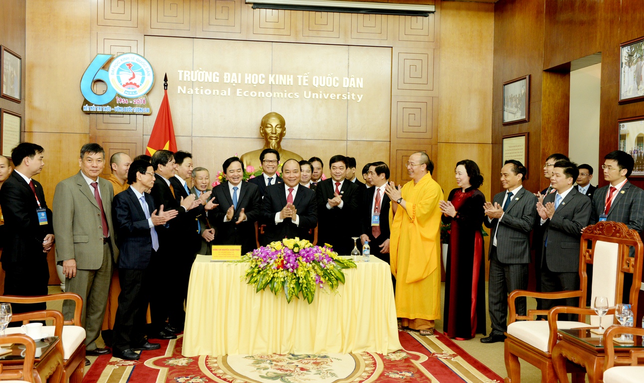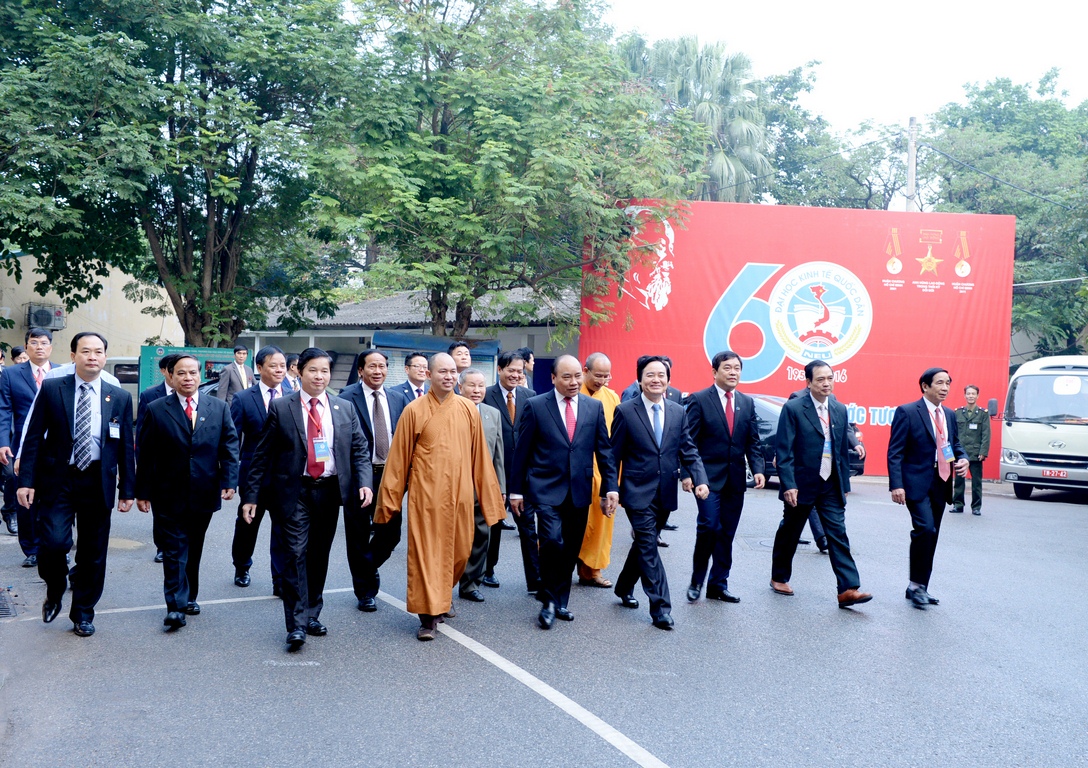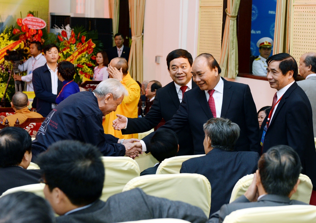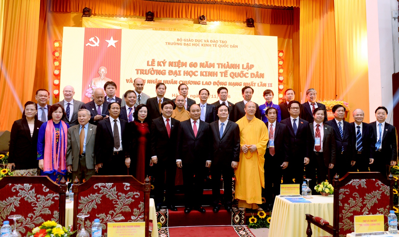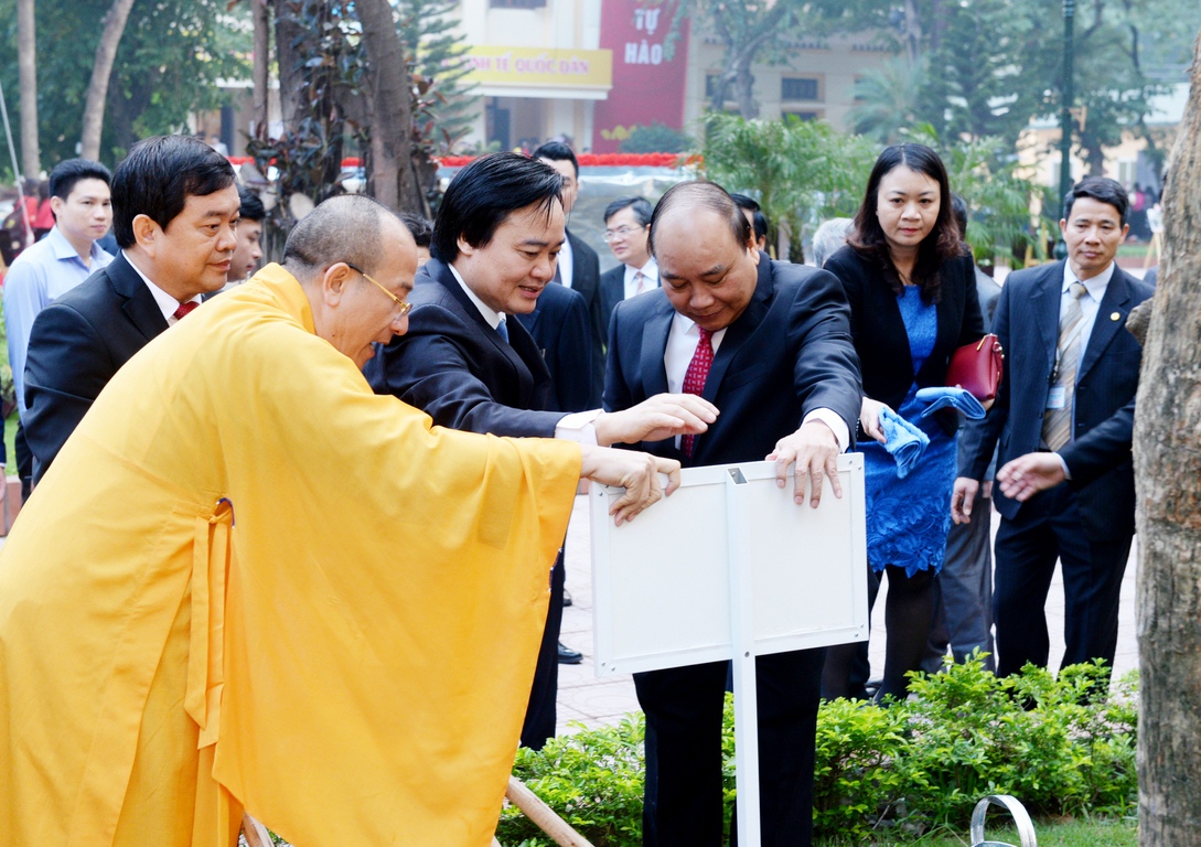 Hình ảnh Thủ tướng Nguyễn Xuân Phúc cùng đại biểu, thầy cô giáo và chụp ảnh lưu niệm tại Lễ kỷ niệm 60 năm thành lập Trường.