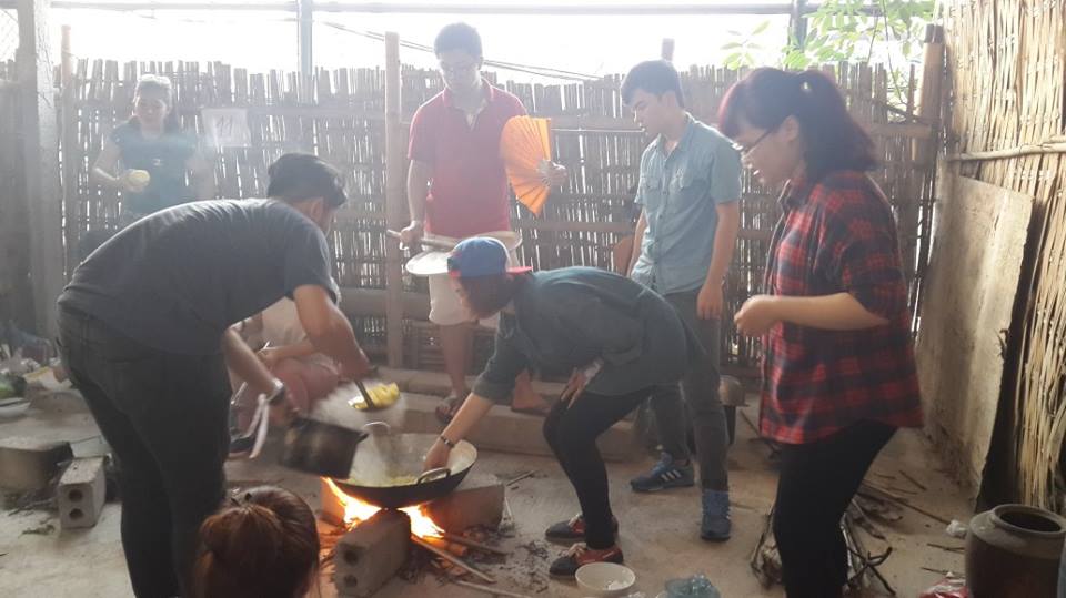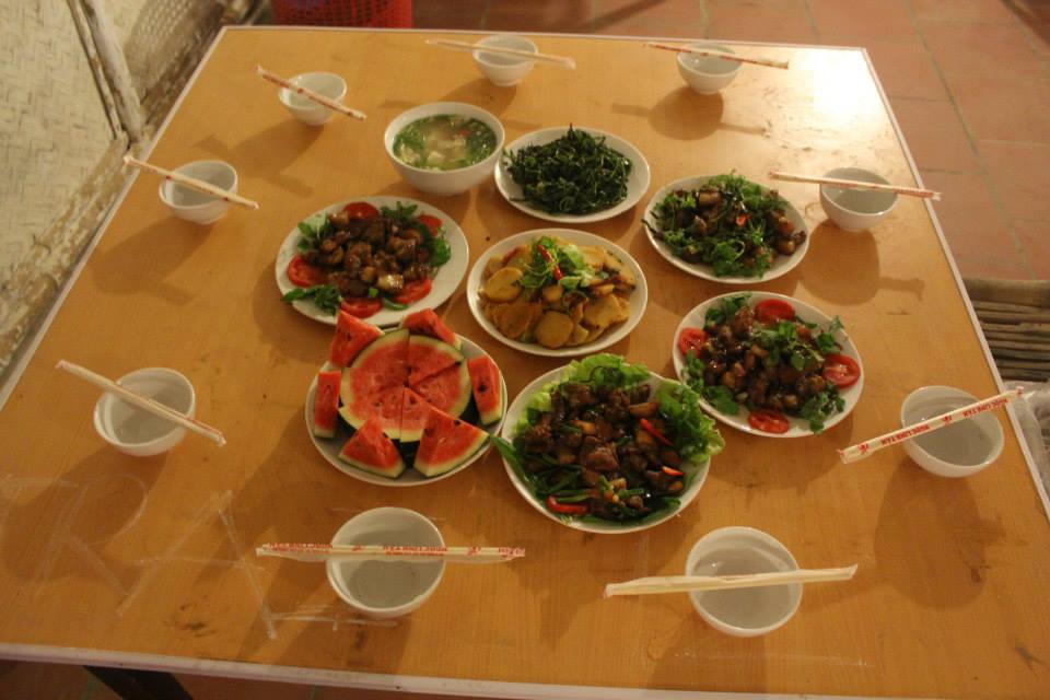 Loáng một cái đã đến 5h chiều,những mâm tiệc thịnh soạn đã dần dần được bày ra. Nào trứng tráng, nào rau trộn, nào thịt rán, thịt bò hầm, canh chua… Có bạn I10 còn hào hứng phát biểu: “Lần đầu tiên trong đời em nấu một bữa cơm hoàn chỉnh là hôm nay: dùng bếp gạch, dùng chảo cọ ra đầy nhọ nồi. Ở nhà em có phải nấu cơm bao giờ đâu, mà nếu có cũng chỉ là cắm nồi cơm điện. Thế mà lần này làm được nhiều món quá!”. Quả thật, có thiếu một tí, có thử thách một tí mới thấy sướng khi khám phá ra rằng mình cũng có thể làm được những việc mà ngày thường chưa bao giờ dám nghĩ đến.