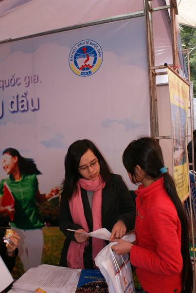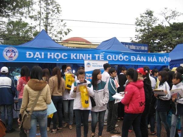 thực hiện tư vấn tuyển sinh tại Trung tâm huấn luyện và thi đấu Thể dục thể thao TP Thanh Hóa. Trong buổi sáng ngày 11/03, tổ công tác tư vấn đã phối hợp cùng ban tổ chức thực hiện việc giới thiệu thông tin tuyển sinh vào Trường ĐH Kinh tế quốc dân và các chương trình đào tạo của Nhà trường thông qua chương trình truyền hình trực tiếp tại trường quay bên trong Trung tâm huấn luyện và thi đấu Thể dục thể thao cũng như tại gian trại phía ngoài. Sau phần giới thiệu thông tin, tổ công tác tư vấn đã dành phần lớn thời gian để trả lời các câu hỏi của các phụ huynh và học sinh về các vấn đề liên quan đến điều kiện tuyển sinh, chỉ tiêu tuyển sinh, khối ngành tuyển sinh, các cơ hội học tập, cơ hội tham gia các hoạt động xã hội trong môi trường đào tạo của Nhà trường. Rất nhiều câu hỏi đã đưa ra và được giải đáp, tổ tư vấn cũng đã giới thiệu địa chỉ Cổng thông tin điện tử của nhà trường, số điện thoại đường dây nóng tư vấn tuyển sinh của Nhà trường tới toàn thể phụ huynh và học sinh với mong muốn cung cấp thông tin đầy đủ nhất cho các phụ huynh và học sinh đưa ra quyết định lựa chọn trường, chuyên ngành phù hợp cho con em và bản thân mình. Sau thời gian làm việc tập trung, hoạt động tư vấn tuyển sinh đại học chính quy năm 2012 của tổ công tác tại Thanh Hóa đã thành công tốt đẹp. Đây cũng là hoạt động tư vấn cuối cùng trong chuỗi hoạt động tư vấn tuyển sinh tại 3 địa phương Hải Phòng, Quảng Ninh và Thanh Hóa.
