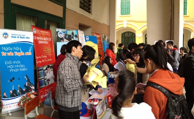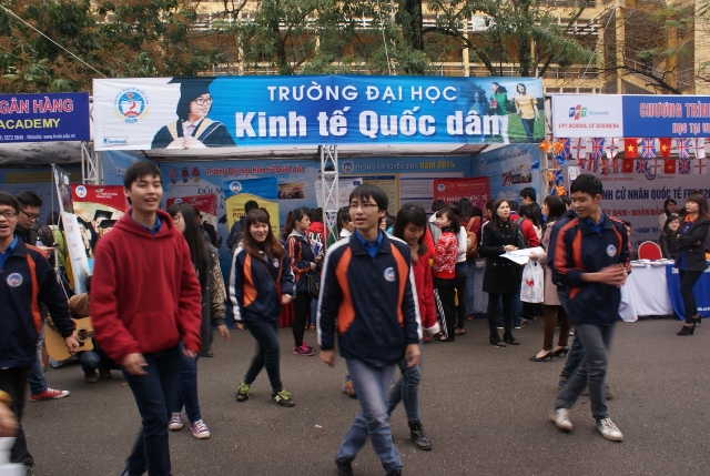 Tiếp nối chuỗi hoạt động tư vấn tuyển sinh trực tiếp, Đại học Kinh tế quốc dân đã tham dự Ngày hội tư vấn tuyển sinh – hướng nghiệp 2014 do Bộ Giáo dục và Đào tạo phối hợp với Báo Tuổi trẻ tổ chức tại Đại học Bách Khoa Hà Nội vào ngày 09/03/2014. Với hơn 100 trường Đại học, Cao đẳng tham gia cùng số lượng học sinh đến từ các trường THPT lên tới hơn 3.000, Ngày hội tư vấn tại Đại học Bách Khoa được Ban Tư vấn tuyển sinh của Trường đánh giá là một trong những địa điểm quan trọng nhất trong chuỗi hoạt động tư vấn. Trong ngày 09/03, GS.TS Nguyễn Quang Dong đã tham gia Ban Tư vấn nhóm ngành: Kinh tế, Tài chính, Ngân hàng.. để cung cấp những thông tin hữu ích và giải đáp các thắc mắc của thí sinh và các vị phụ huynh về những điểm mới trong kỳ thi tuyển sinh ĐH, CĐ năm 2014, tư vấn lựa chọn nghề nghiệp, ngành đào tạo, trường dự thi và cơ hội học tập, nghề nghiệp khi trở thành cử nhân Đại học Kinh tế quốc dân.