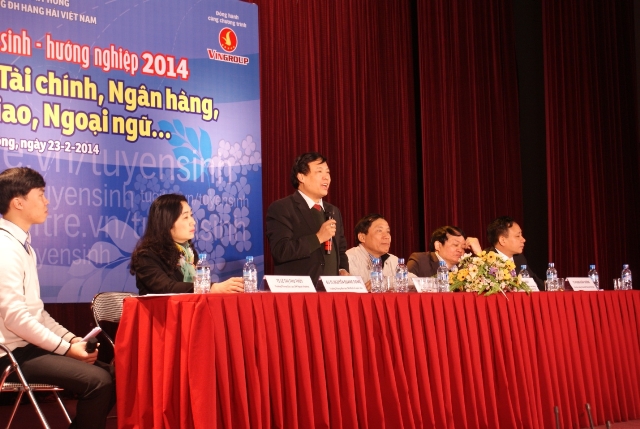 Mở đầu cho chuỗi các hoạt động tư vấn tuyển sinh tại các địa điểm, ngày 22/02/2014, đoàn công tác đã có mặt tại THPT Chu Văn An để tham gia chương trình “Tư vấn tuyển sinh 2014” do Đài truyền hình Việt Nam tổ chức được truyền hình trực tiếp trên kênh VTV2. GS.TS Nguyễn Quang Dong đã tham gia Ban Tư vấn trực tiếp giải đáp thắc mắc của các bạn học sinh liên quan đến những điểm mới trong tuyển sinh, việc lựa chọn nghề nghiệp, ngành và chuyên ngành đào tạo của Trường cũng như cơ hội nghề nghiệp đối với sinh viên sau khi hoàn thành chương trình đào tạo. Tại khu vực gian hàng, đại diện Trường cũng như cán bộ tư vấn từ các Viện Đào tạo quốc tế, Viện Quản trị kinh doanh, Trung tâm đào tạo tiên tiến đã tiến hành tư vấn và phát tài liệu thông tin tới hơn 300 em học sính của trường THPT Chu Văn An.