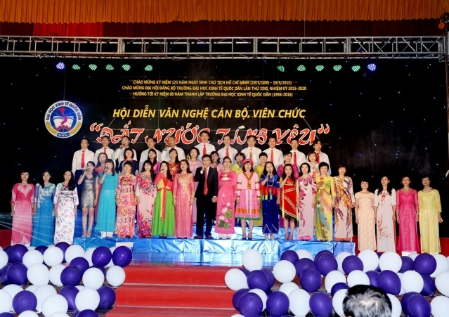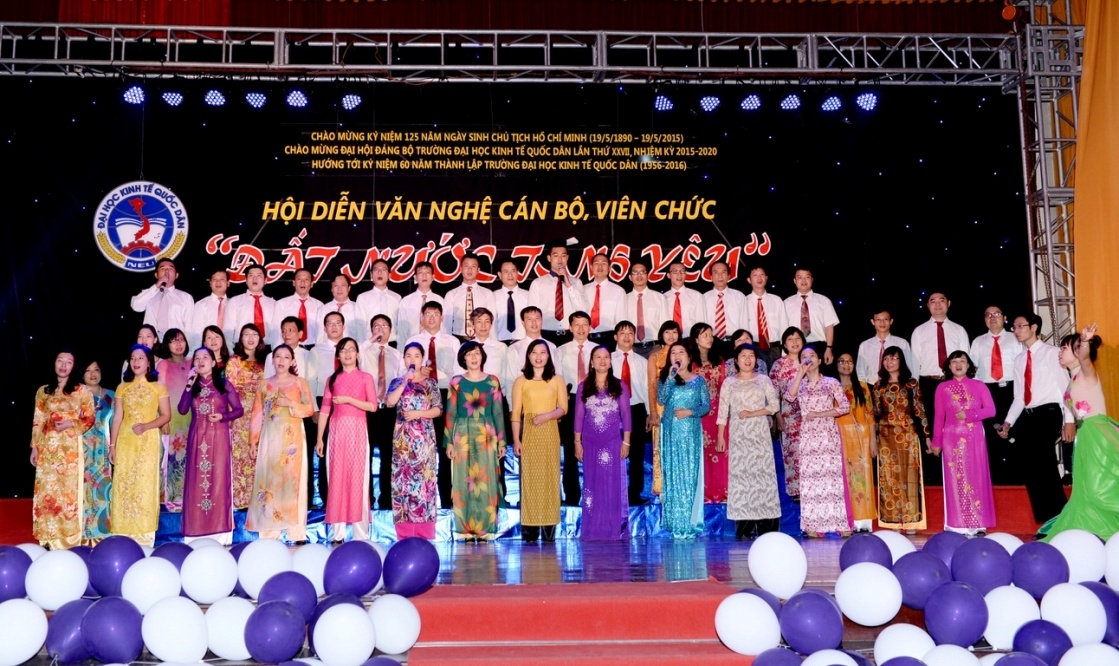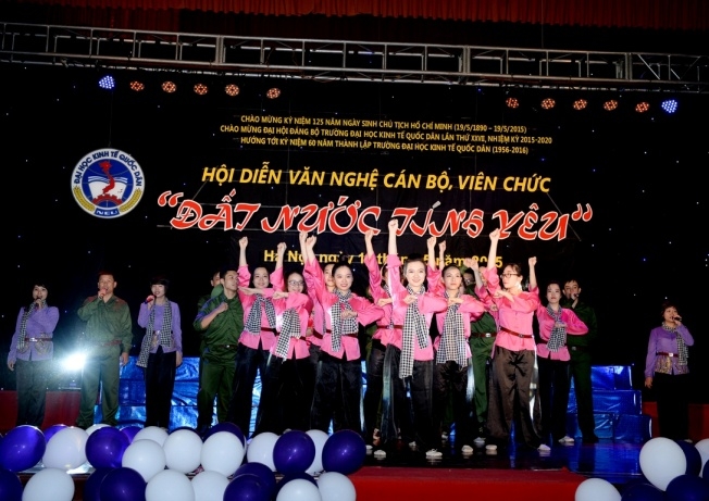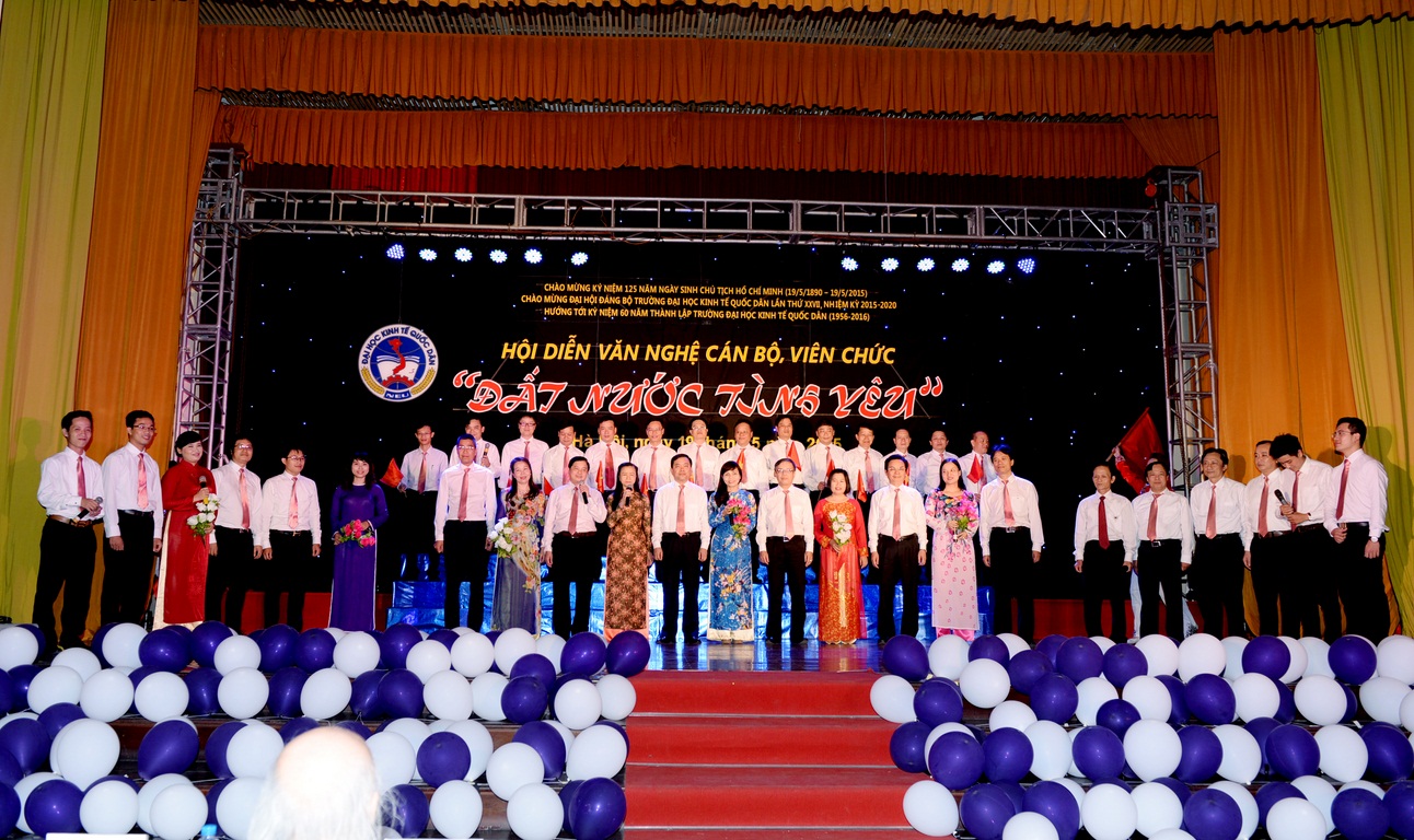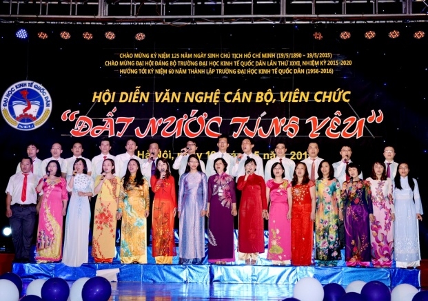 Kỷ niệm 125 năm ngày sinh Chủ tịch Hồ Chí Minh (1890 – 2015), chào mừng Đại hội Đảng bộ trường lần thứ XXVII và Hướng tới kỷ niệm 60 năm thành lập trường ĐHKTQD, tối 19 tháng 5 năm 2015, tại Nhà Văn hóa trường ĐH Kinh tế Quốc dân đã diễn ra đêm Hội diễn văn nghệ cán bộ, viên chức trường với chủ đề “Đất nước tình yêu”. Đến tham dự Hội diễn, về phía các vị khách ngoài trường có TS.Phạm Văn Thanh – Phó Chủ tịch phụ trách Công đoàn Giáo dục Việt Nam, Nhạc sĩ Trương Quý Hải, NSƯT Ngọc Lan, NSƯT Trần Ngọc. Về phía trường ĐHKTQD có GS.TS Trần Thọ Đạt – Bí thư Đảng ủy, Hiệu trưởng cùng các đồng chí Phó Hiệu trưởng: GS.TS Phạm Quang Trung, PGS.TS Phạm Hồng Chương, PGS.TS Trần Thị Vân Hoa, PGS.TS.Hoàng Văn Cường;  GS.TS  Nguyễn Viết Lâm – Phó Bí thư thường trực Đảng ủy, TS.Nguyễn Hữu Đồng – Chủ tịch Công đoàn; GS.TS Hoàng Ngọc Việt – Chủ tịch Hội CCB; ThS. Bùi Trung Hải – Bí thư ĐTN, cùng đại diện lãnh đạo các đơn vị, các thầy cô giáo, các em sinh viên nhà trường đã đến cổ vũ