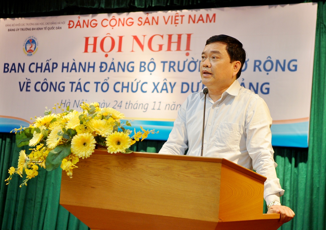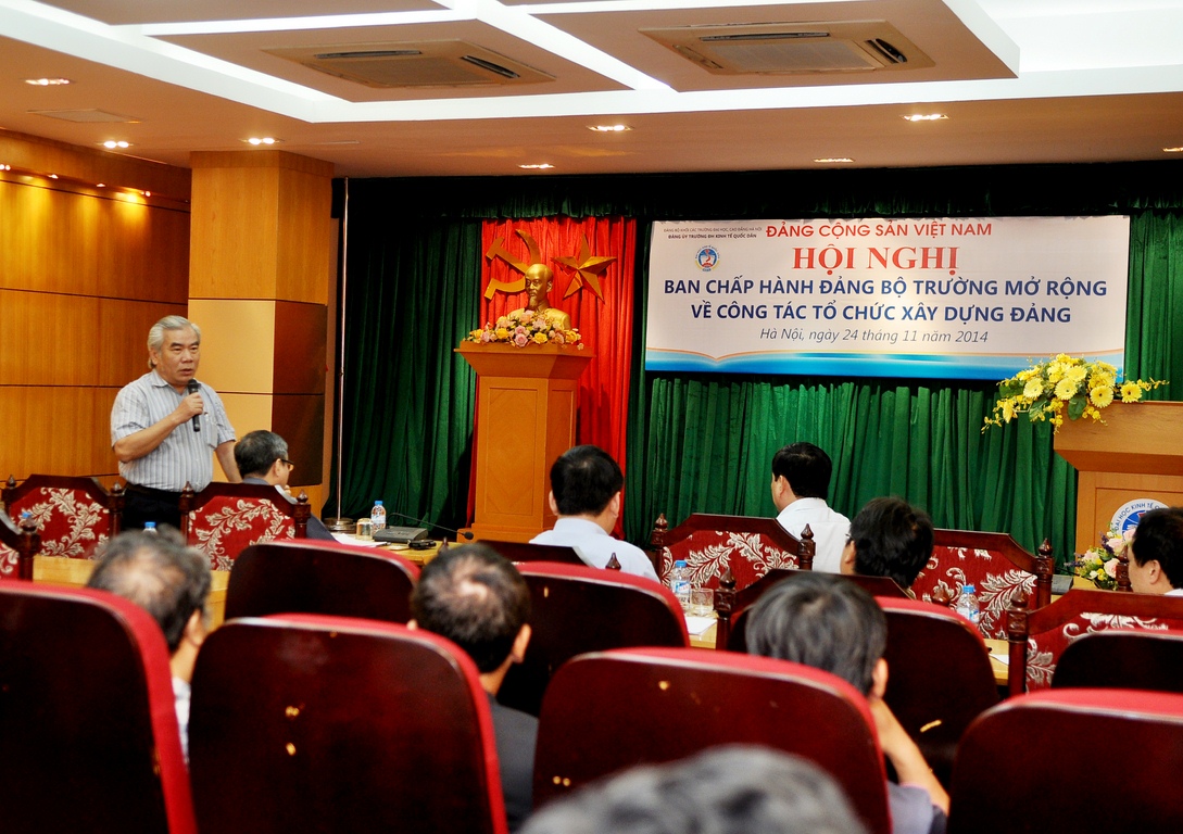 Để tiến tới Đại hội lần thứ XII của Đảng Cộng sản Việt Nam và Đại hội Đại biểu Đảng bộ Trường ĐHKTQD lần thứ XXVII, ngày 24 tháng 12 năm 2014 Đảng ủy trường ĐHKTQD tổ chức Hội nghị Ban chấp hành Đảng bộ mở rộng đến tất cả Bí thư các Chi bộ để phổ biến Kế hoạch của Đảng uỷ Trường về công tác tổ chức Đại hội Đảng các cấp và hướng dẫn một số nội dung liên quan đến công tác chuẩn bị về tổ chức và nhân sự cho đại hội Đảng các cấp. Tham dự Hội nghị có: GS.TS Trần Thọ Đạt – Bí thư ĐU, Hiệu trưởng Nhà trường; GS.TS Nguyễn Viết lâm – Phó Bí thư TT Đảng uỷ Nhà trường; GS.TS Phan Công Nghĩa – Nguyên Phó Hiệu trưởng Nhà trường cùng các đồng chí trong BCH Đảng bộ Trường; các đồng chí Bí thư Đảng bộ bộ phận và  các Chi bộ trực thuộc Đảng bộ Trường