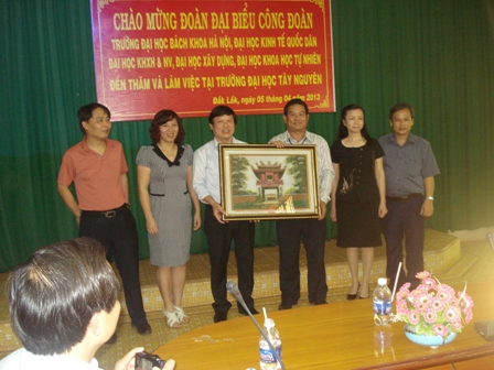 Đại diện CĐ 5 trường trao quà tặng cho đại diện trường ĐH Tây Nguyên