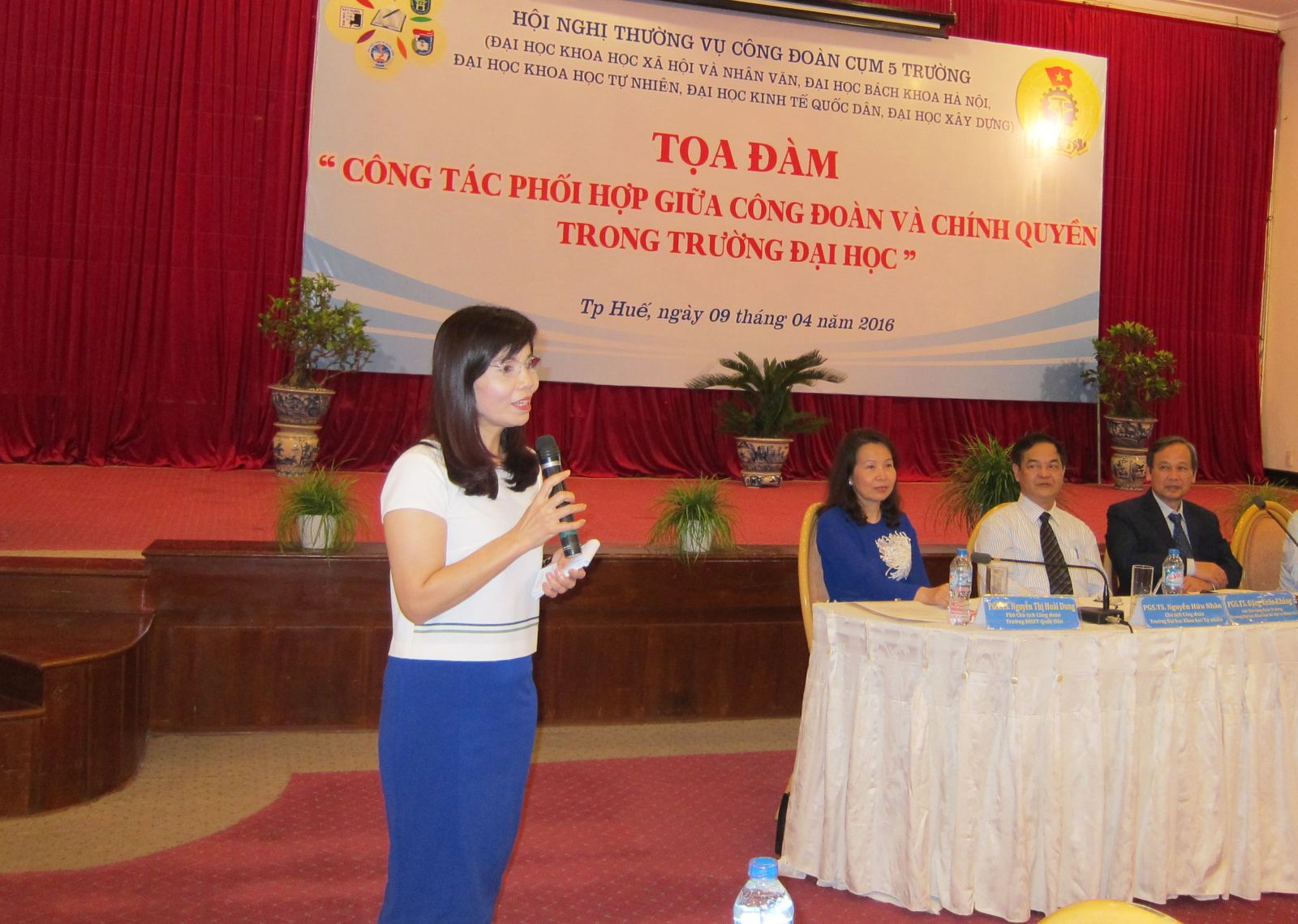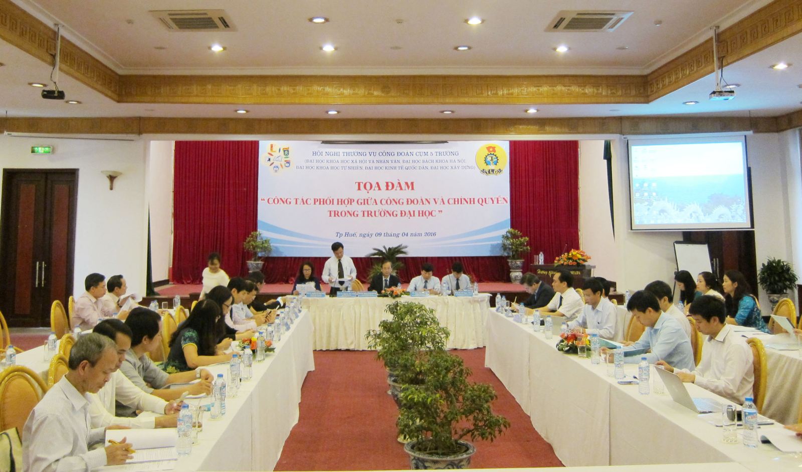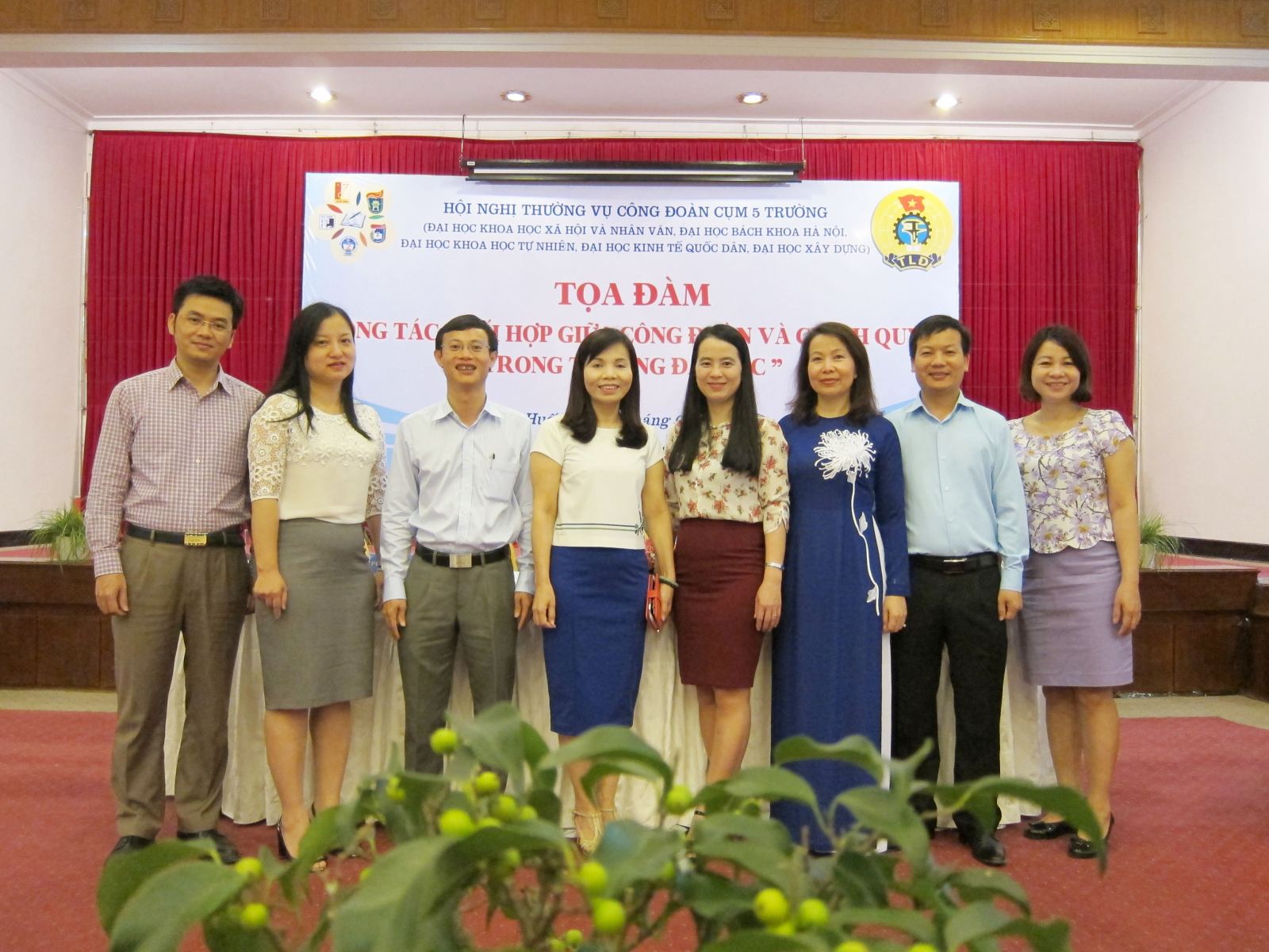 Ngày 9/4/2016 tại TP Huế đã diễn ra hội nghị Công đoàn cụm 5 trường: Đại học Bách khoa; Đại học Kinh tế Quốc dân; Đại học Xây dựng; Đại học KHXH và Nhân văn; Đại học Khoa học tự nhiên. Đây là hoạt động thường niên hàng năm, và năm nay trường Đại học KHXH và Nhân văn chủ trì với chủ đề hội nghị: “Công tác phối hợp giữa công đoàn và chính quyền trong trường đại học”.