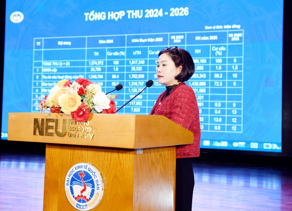Về phương hướng, nhiệm vụ năm 2026, Giám đốc Đại học nhấn mạnh Đại học Kinh tế Quốc dân sẽ tiếp tục tập trung kiện toàn tổ chức bộ máy; rà soát, hoàn thiện chiến lược phát triển; đẩy mạnh đổi mới quản trị đại học; nâng cao chất lượng đào tạo, nghiên cứu khoa học và phục vụ cộng đồng. Cùng với đó, Đại học chú trọng phát triển đội ngũ giảng viên, viên chức; tăng cường chuyển đổi số, ứng dụng công nghệ trong quản lý và đào tạo; tiếp tục cải thiện điều kiện làm việc, học tập, tạo động lực để toàn thể viên chức, người lao động và người học đồng hành cùng Đại học trong giai đoạn phát triển mới.