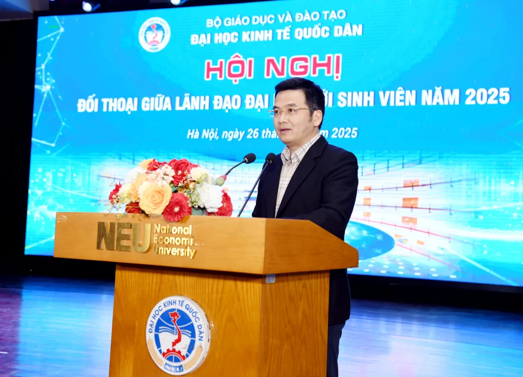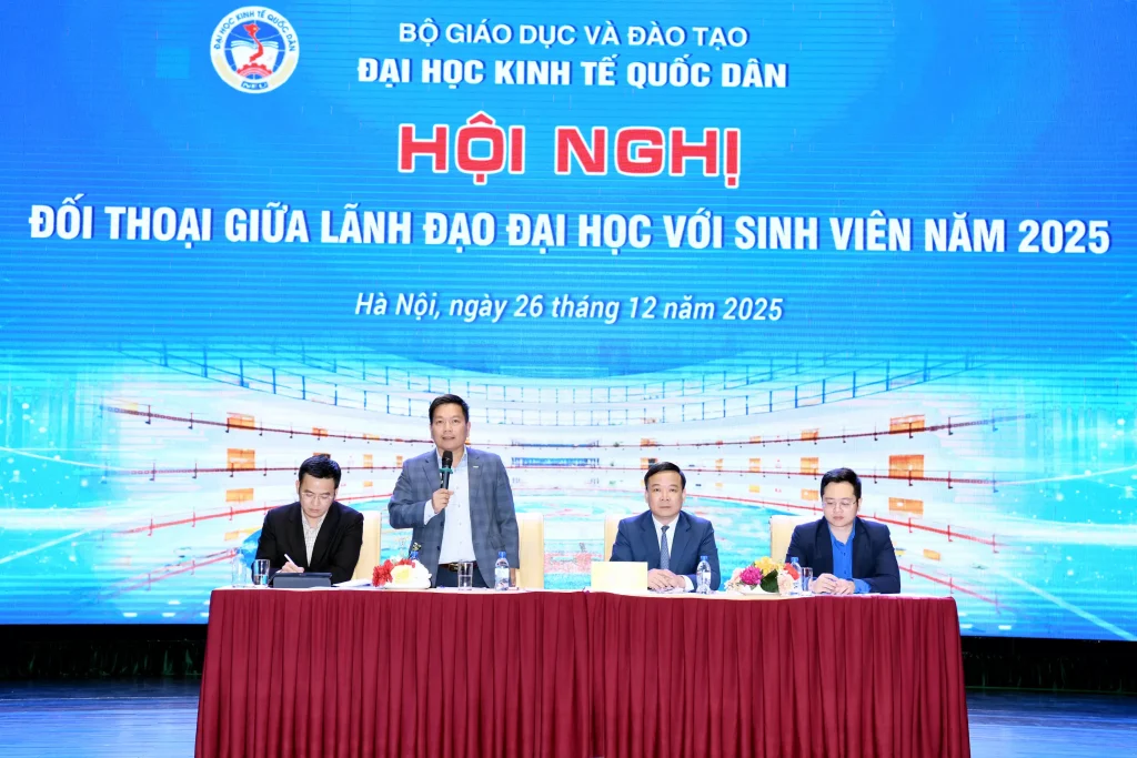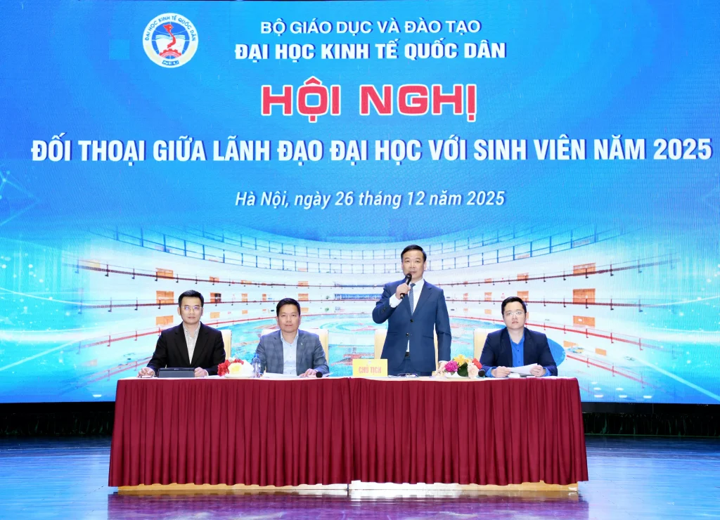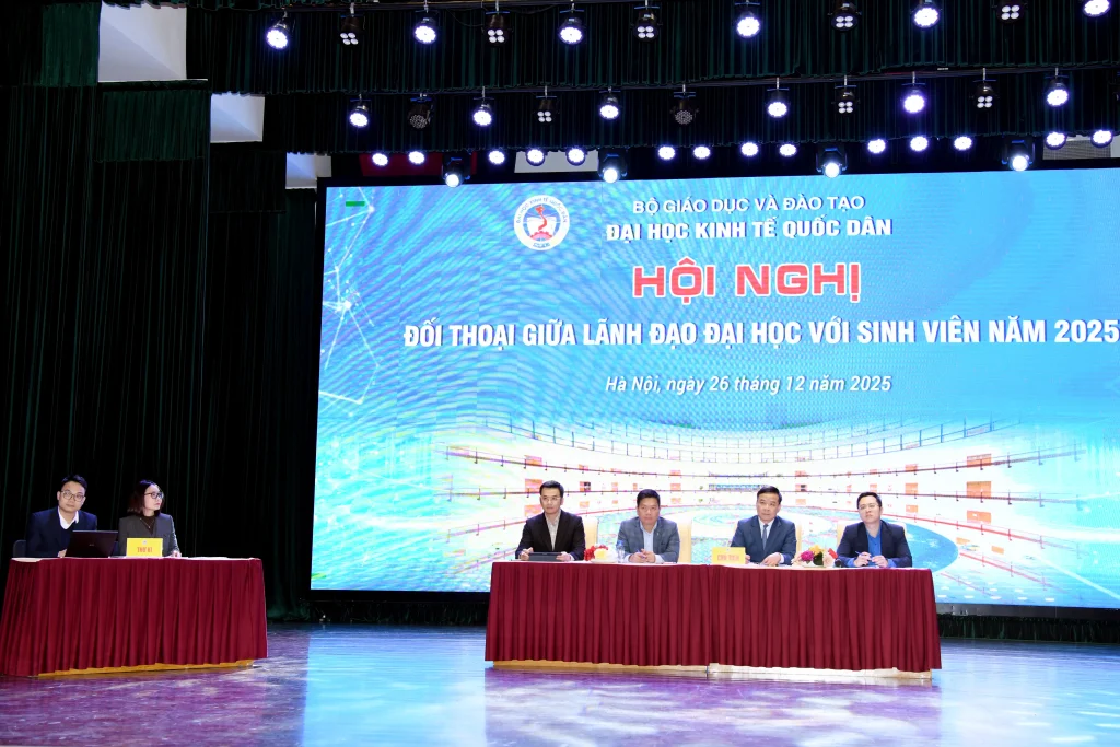 Tối ngày 26/12, tại Hội trường A2, Đại học Kinh tế Quốc dân đã tổ chức Hội nghị đối thoại giữa lãnh đạo Đại học với sinh viên năm 2025.