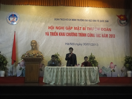 Để không ngừng nâng cao chất lượng hoạt động công tác Đoàn và phong trào thanh niên của Nhà trường, Đoàn trường Đại học Kinh Tế Quốc Dân đã tổ chức “Hội nghị gặp mặt bí thư chi đoàn và triển khai công tác năm 2013”. Hội nghị diễn ra với sự tham gia của các đồng chí: Đ/c Nguyễn Hoàng Hà – Bí thư Đoàn Trường, đ/c Bùi Trung Hải – Phó Bí thư thường trực, đ/c Trần Quý Long – Phó Bí thư Đoàn Trường, các đồng chí trong BCH Đoàn trường, các Đồng chí Bí thư LCĐ, cùng toàn thể Bí thư chi đoàn các khóa.
