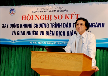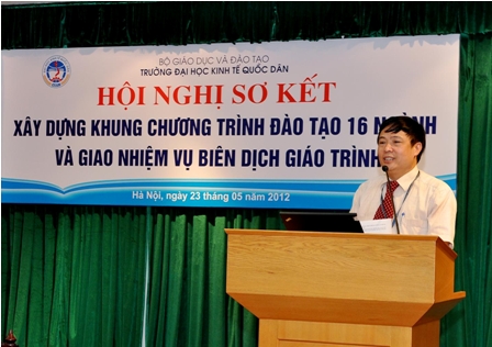 Nhằm tổng kết lại những kết quả đã đạt được và rút ra những kinh nghiệm quý báu trong quá trình xây dựng khung chương trình đào tạo và đưa ra những định hướng, những đánh giá quá trình triển khai trong thời gian tới, sáng 23 tháng 5 năm 2012, trường Đại học Kinh tế Quốc dân đã tổ chức Hội nghị sơ kết xây dựng khung chương trình Đào tạo 16 ngành và giao nhiệm vụ biên dịch giáo trình cho các đơn vị.