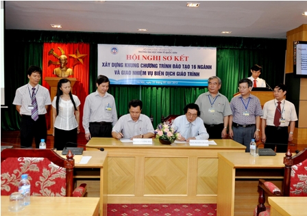 Sau lời phát biểu và tổng kết công tác xây dựng khung chương trình đào tạo 16 ngành của GS.Hiệu trưởng là lễ kýkết giao nhiệm vụ dịch 20 cuốn giáo trình cho các trưởng tiểu ban. Đây là những cuốn giáo trình rất nổi tiếng trên thế giới. Việc dịch và đưa các giáo trình này vào phục vụ công tác giảng dạy, học tập, nghiên cứu trong trường ta là một trong những nhân tố góp phần nâng cao chất lượng đào tạo của nhà trường, đưa trường ta ngày một có uy tín trong khu vực và trên thế giới.