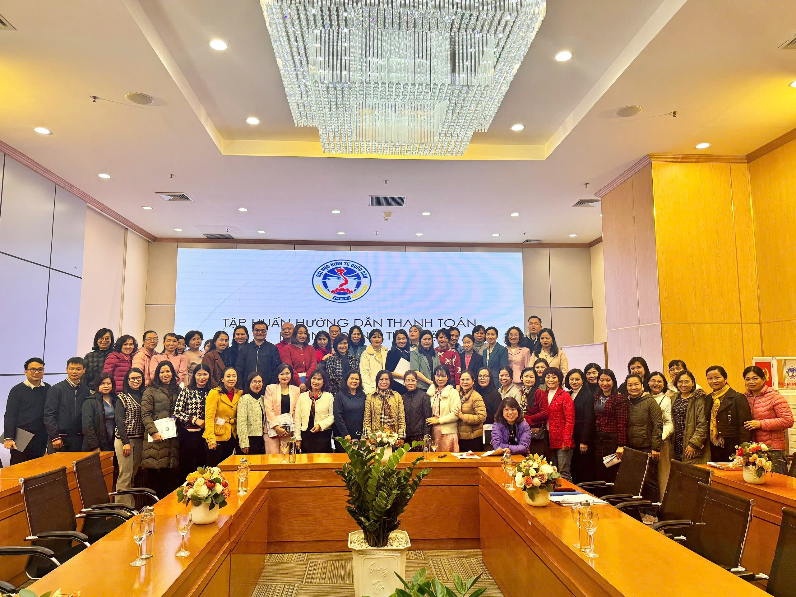 Đại biểu và cán bộ làm đầu mối thanh toán của các đơn vị tham dự buổi tập huấn cùng chụp ảnh lưu niệm