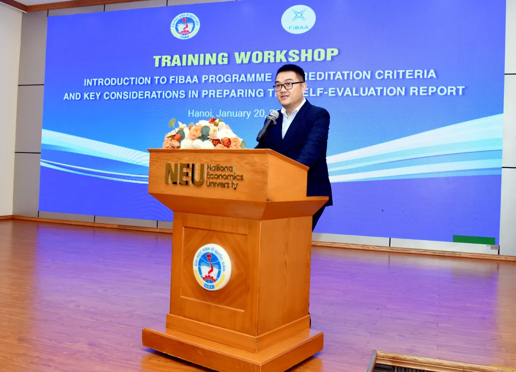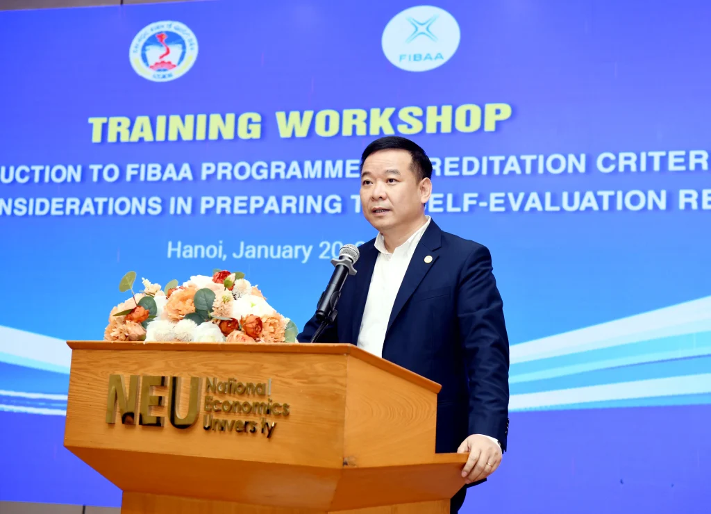 Nhằm tiếp tục cải tiến và nâng cao chất lượng các chương trình đào tạo theo các tiêu chuẩn quốc tế, sáng ngày 20/1/2026, Đại học Kinh tế Quốc dân đã tổ chức Hội nghị tập huấn kiểm định chất lượng chương trình đào tạo theo tiêu chuẩn FIBAA, với sự tham gia của đại diện lãnh đạo các đơn vị, các cán bộ giảng viên và các thầy cô tham gia viết báo cáo tự đánh giá các chương trình đào tạo.