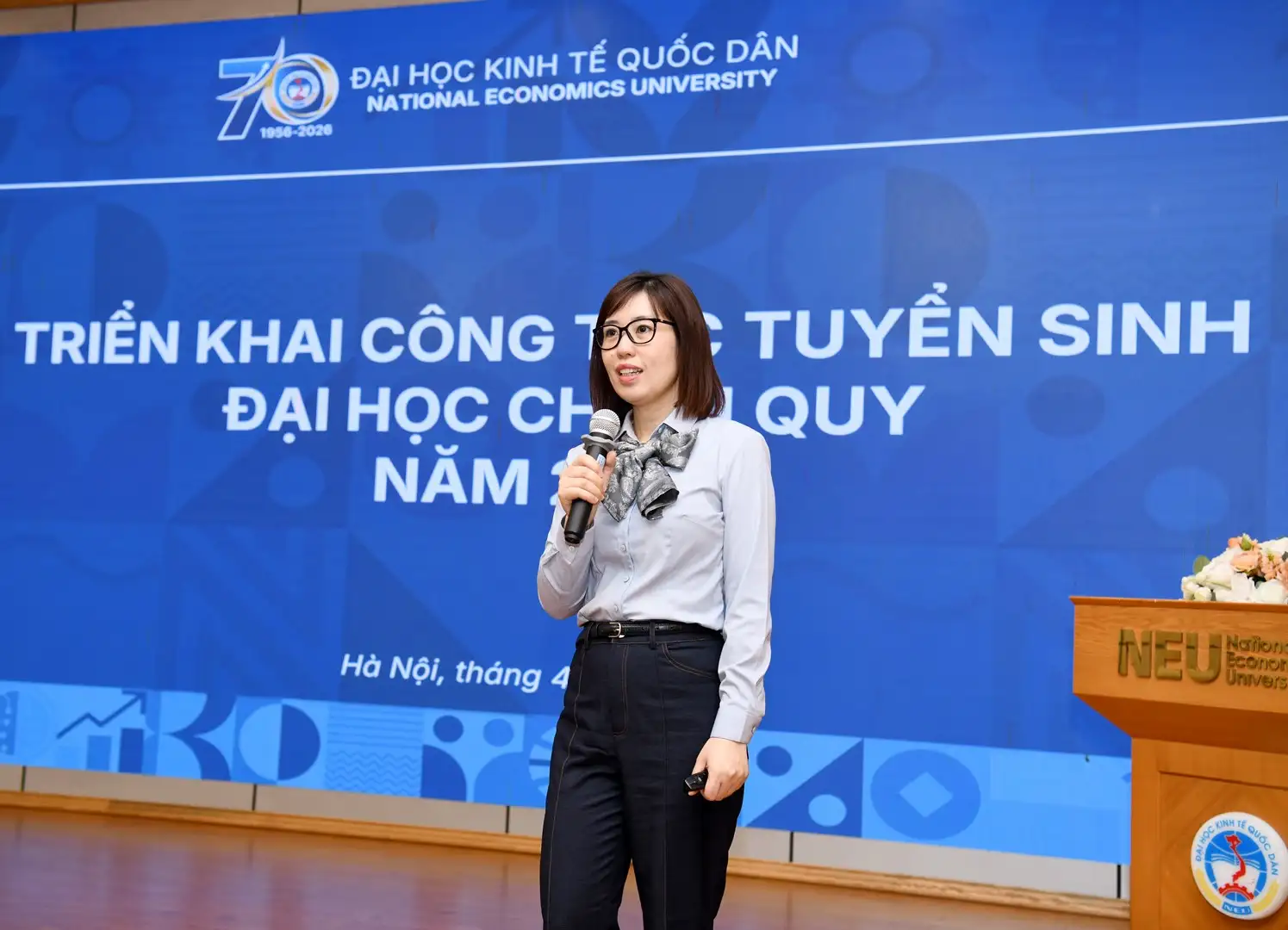 ThS. Hoàng Thanh Hà – Phòng Quản lý đào tạo, Đại học Kinh tế Quốc dân giới thiệu và triển khai công tác tuyển sinh ĐHCQ năm 2026