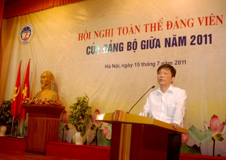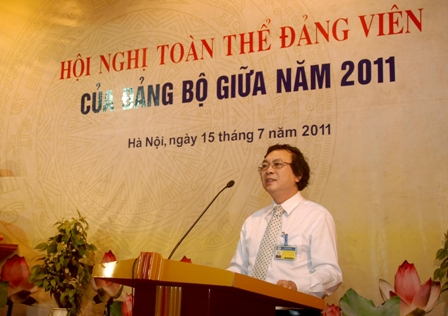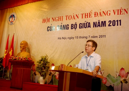GS.TS. Nguyễn Văn Nam – Bí thư Đảng uỷ, Hiệu trưởng, trình bày báo cáo kết quả lãnh đạo 6 ttháng đầu năm và chủ trương lãnh đạo 6 tháng cuối năm 2011 của Đảng bộ