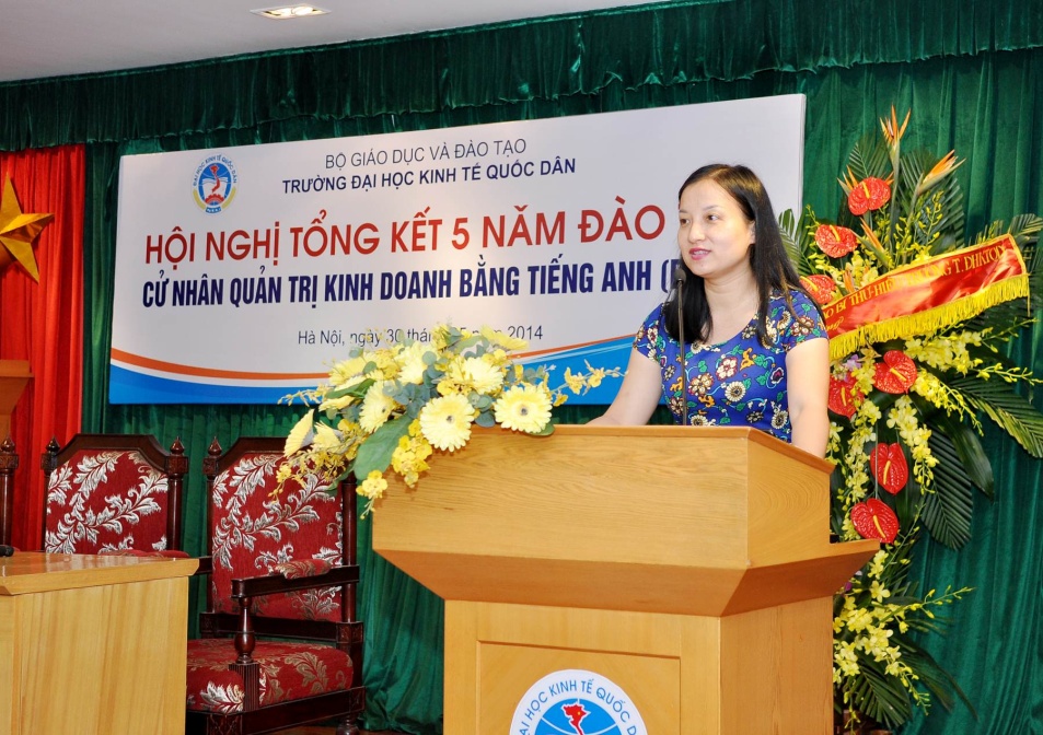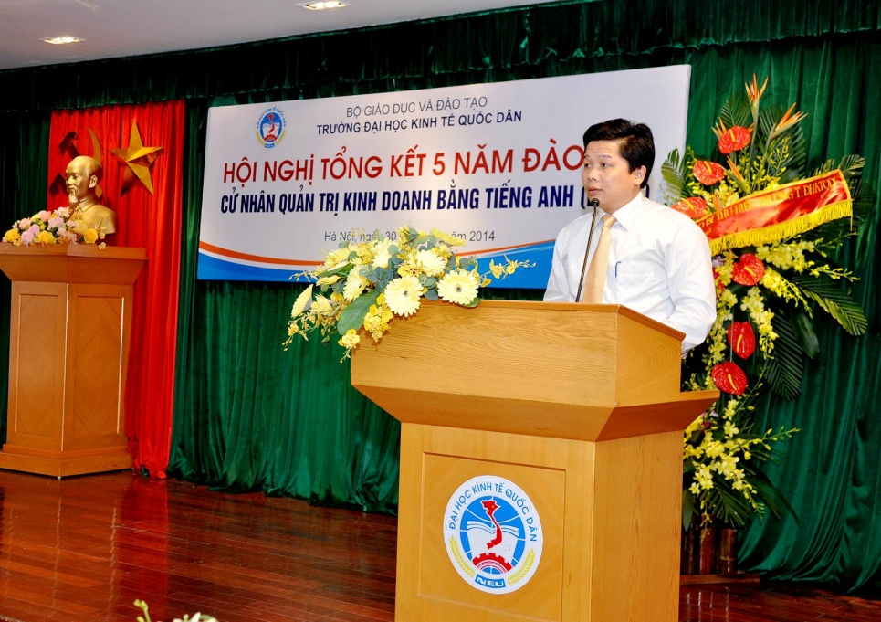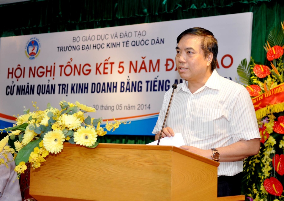 Phát biểu tại Hội nghị, PGS.TS. Bùi Anh Tuấn, Vụ trưởng Vụ giáo dục Đại học đã chúc mừng thành công của chương trình trong 5 năm qua. Đây là chương trình được triển khai đầu tiên tại trường ĐHKTQD, từ chương trình này Bộ Giáo dục và Đào tạo đã cho phép triển khai ở một số trường khác. PGS.TS. Bùi Anh Tuấn cũng đề nghị về phía nhà trường, từ thành công của chương trình được tổng kết tại Hội nghị, sẽ nhân rộng ra các Ngành đạo tạo khác hiện nay của Nhà trường.