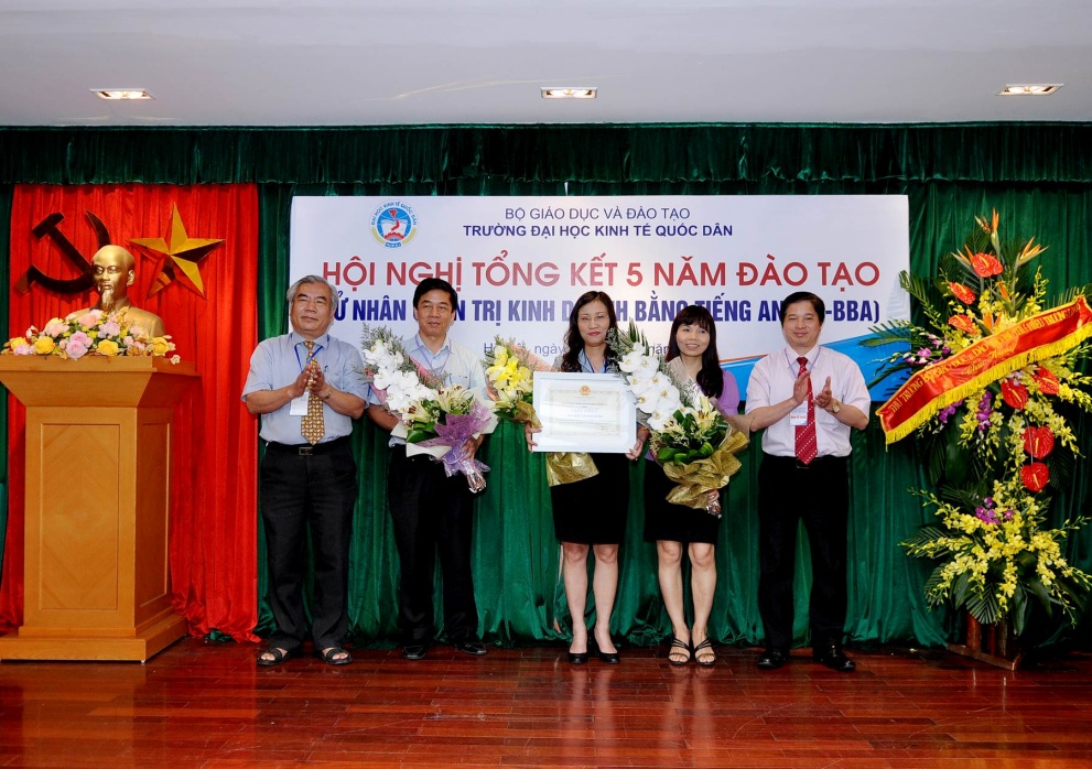 Vừa qua, tại G2.N10 trường Đại học Kinh tế Quốc dân ( ĐHKTQD) đã diễn ra Hội nghị tổng kết 5 năm đào tạo chương trình cử nhân Quản trị Kinh doanh (E-BBA). Đến dự Hội nghị, về phía Bộ Giáo dục và Đào tạo: PGS.TS Bùi Tuấn Anh, Vụ trưởng Vụ GD Đại học. Về phía trường ĐHKTQD có GS.TS. Phạm Quang Trung, UVTVĐU, Phó Hiệu trưởng; GS.TS Phan Công Nghĩa, Phó Hiệu trưởng; GS.TS Trần Thọ Đạt, Phó Bí thư Đảng ủy, Phó Hiệu trưởng; GS.TS. Nguyễn Viết Lâm, Phó Bí thư thường trực Đảng ủy; GS.TS Nguyễn Quang Dong, Trưởng phòng QLĐT; PGS.TS. Trần Thị Vân Hoa, Viện trưởng Viện Quản trị Kinh doanh cùng các đồng chí lãnh đạo các đơn vị, các tổ chức chính trị xã hội trong toàn trường, các em sinh viên của chương trình.