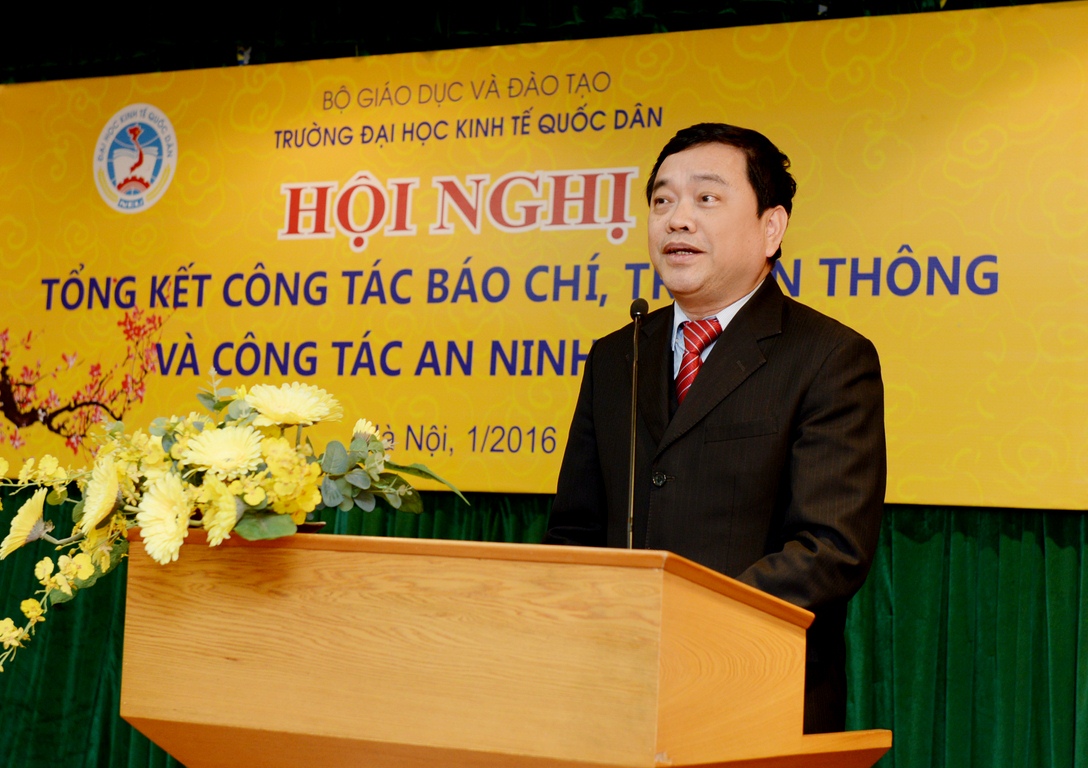 Phát biểu tại Hôi nghị, GS.TS Trần Thọ Đạt – Bí thư Đảng ủy, Hiệu trưởng nhà trường đã gửi lời cảm ơn chân thành tới các cơ quan thông tấn báo chí, đội ngũ nhà báo, phóng viên, các cơ quan an ninh, cộng tác viên trong thời gian qua đã luôn theo sát, chia sẻ, giúp đỡ tích cực đưa thông tin với mục tiêu vì sự phát triển của Trường Đại học Kinh tế Quốc dân và mong rằng trong năm 2016, cùng với sự giúp đỡ  của  các ngành, các cấp, nhà trường tiếp tục nhận được sự giúp đỡ quan tâm với tinh thần xây dựng, thẳng thắn và chân tình của các cơ quan an ninh, các cơ quan báo chí và đội ngũ phóng viên để nhà trường tiếp tục phát triển và đạt được nhiều thành tựu mới, đặc biệt trong năm kỷ niệm 60 năm thành lập. Cũng nhân dịp năm mới Bính Thân sắp đến, Hiệu trưởng Trần Thọ Đạt gửi lời chúc tới các vị đại biểu – một năm mới sức khỏe, an khang và thịnh vượng.