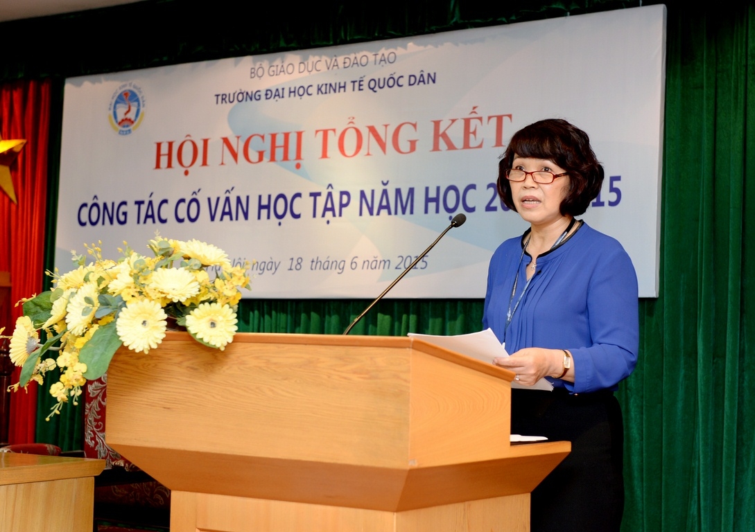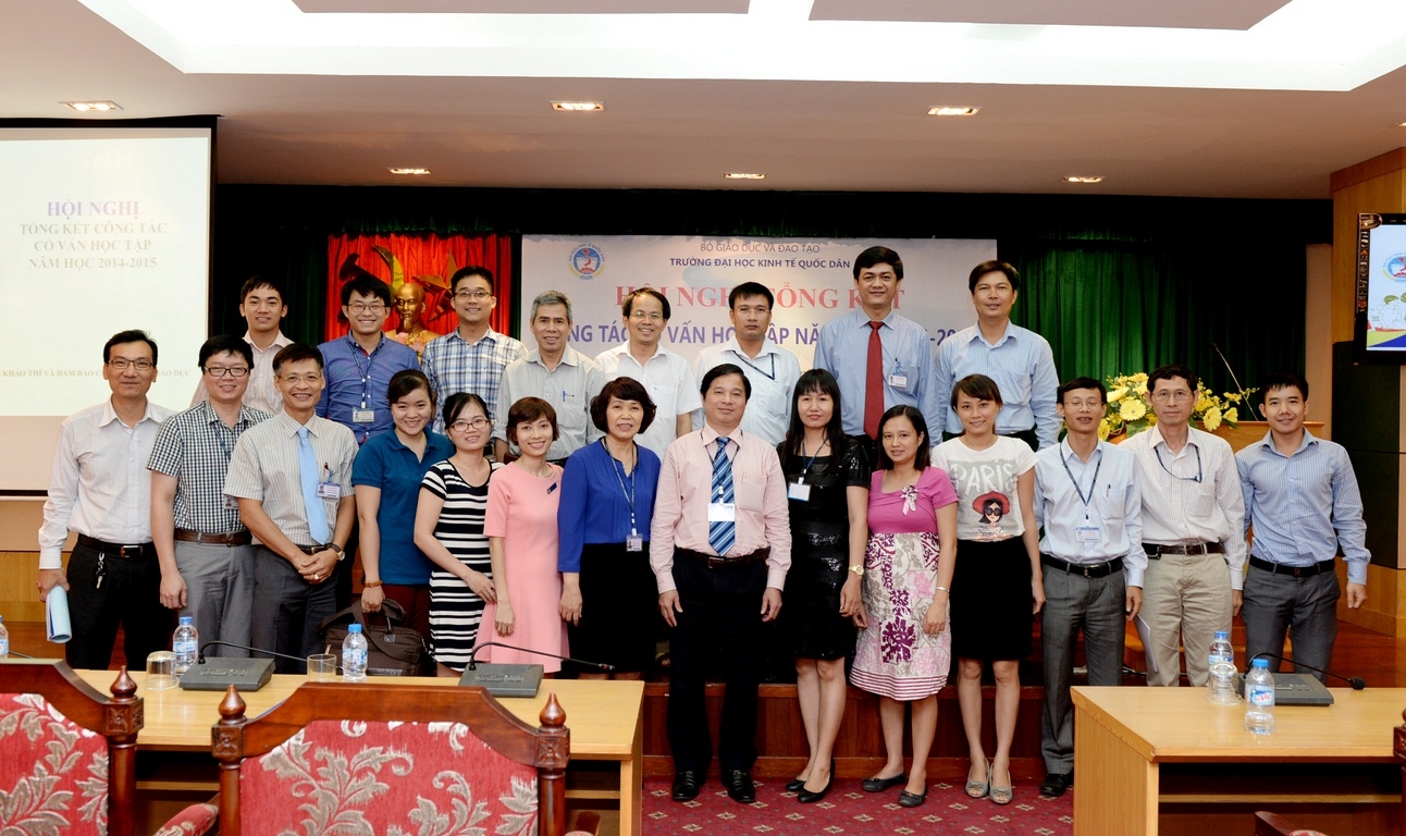 Thực hiện Quyết định số 158/QĐ-KTQD ngày 23/01/2015 của Hiệu trưởng về việc giao Kế hoạch công việc, nhiệm vụ năm 2015 và Kế hoạch số 342/KH-ĐHKTQD, ngày 31/3/2015 của Hiệu trưởng về việc tổ chức Hội nghị công tác Cố vấn học tập (CVHT) năm học 2014-2015, sáng 18 tháng 6 năm 2015, tại Gác 2 nhà 10, trường Đại học Kinh tế Quốc dân đã long trọng tổ chức Hội nghị tổng kết công tác cố vấn học tập năm học 2014 – 2015.