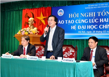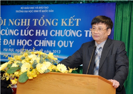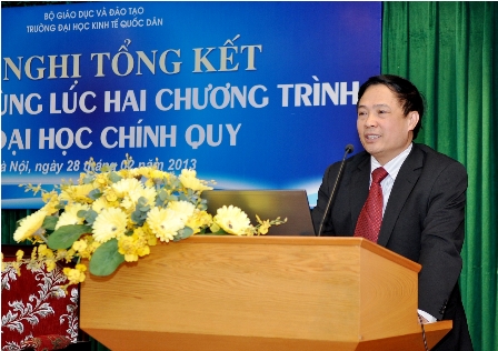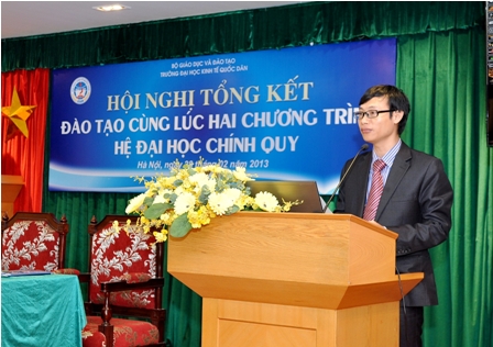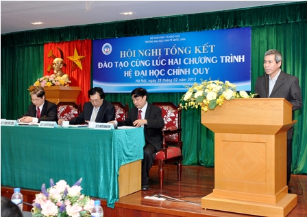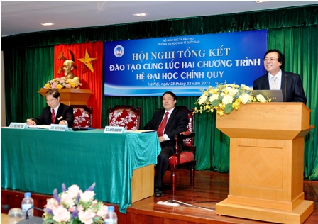 Đã từ lâu, Đảng ủy, Ban Giám hiệu Trường Đại học Kinh tế Quốc dân (ĐHKTQD) đã nhanh chóng và quyết liệt triển khai nghiên cứu thực hiện việc đổi mới, chuyển đổi hệ thống đào tạo đại học từ hình thức đào tạo theo niên chế sang hình thức đào tạo tín chỉ và cho phép sinh viên học cùng lúc hai chương trình, tốt nghiệp được cấp hai bằng đại học hệ chính quy. Hình thức đào tạo này đã đáp ứng nguyện vọng của sinh viên chính quy muốn học cùng lúc để được cấp hai bằng đại học chính quy, đáp ứng tốt hơn nhu cầu của thị trường lao động, tiết kiệm chi phí và giúp Nhà trường sử dụng có hiệu quả các nguồn lực của mình. Tuy nhiên, trong quá trình thực hiện, bên cạnh những kết quả đạt được, đã bộc lộ những hạn chế cần khắc phục; vì vậy, ngày 28 tháng 02 năm 2013, Trường ĐHKTQD đã tổ chức Hội nghị Tổng kết đào tạo cùng lúc hai chương trình nhằm đánh giá, rút kinh nghiệm và hoàn thiện hình thức đào tạo cùng lúc hai chương trình.